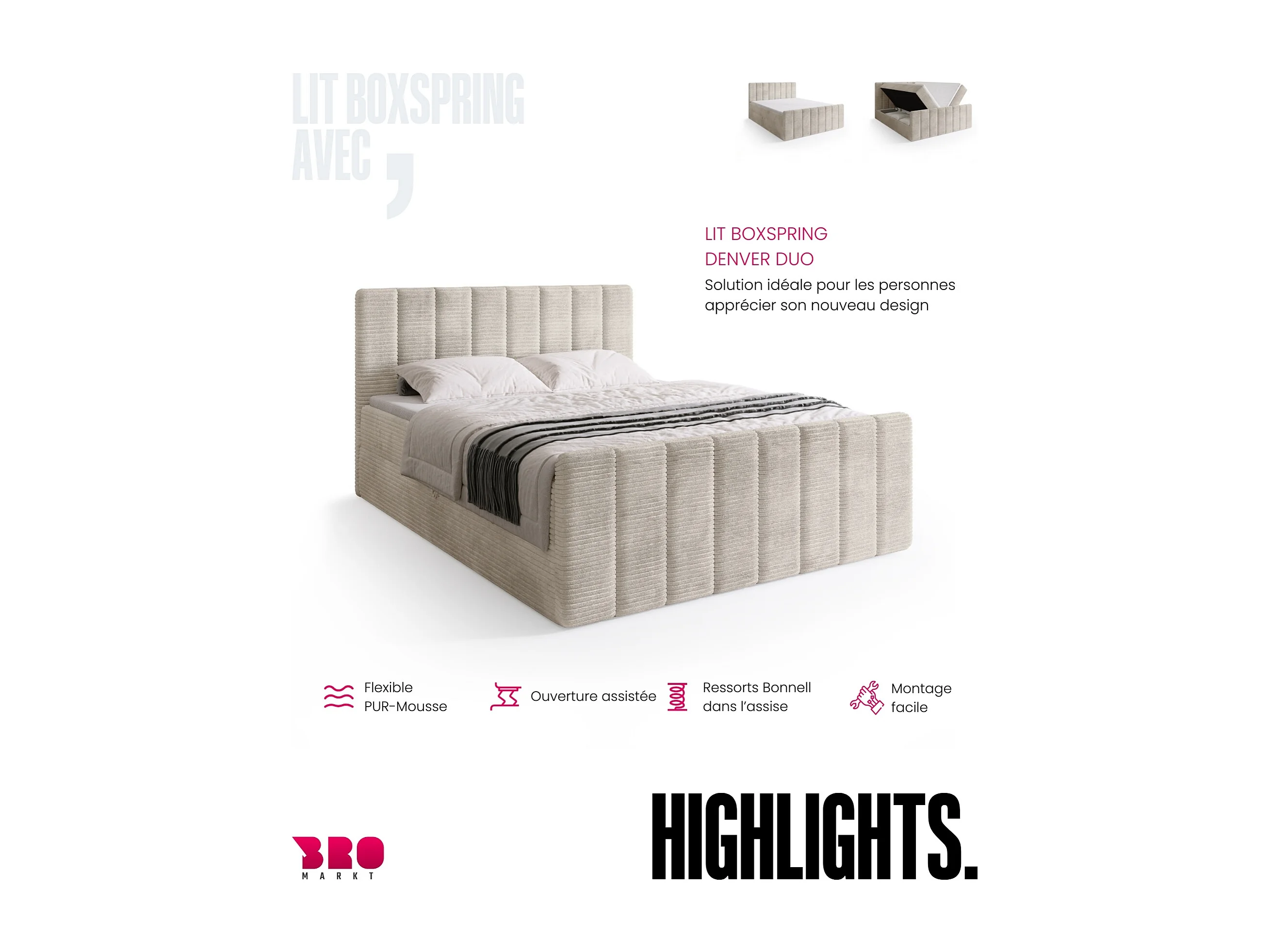 Lit boxspring avec rangement DENVER DUO - matelas - surmatelas - blanc - 160x200 cm