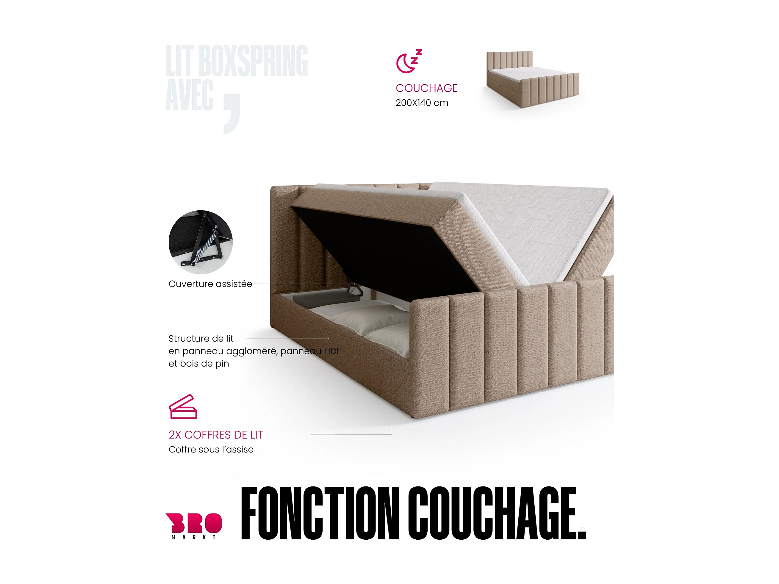 Lit boxspring avec rangement DENVER DUO - matelas - surmatelas - crème - 140x200 cm