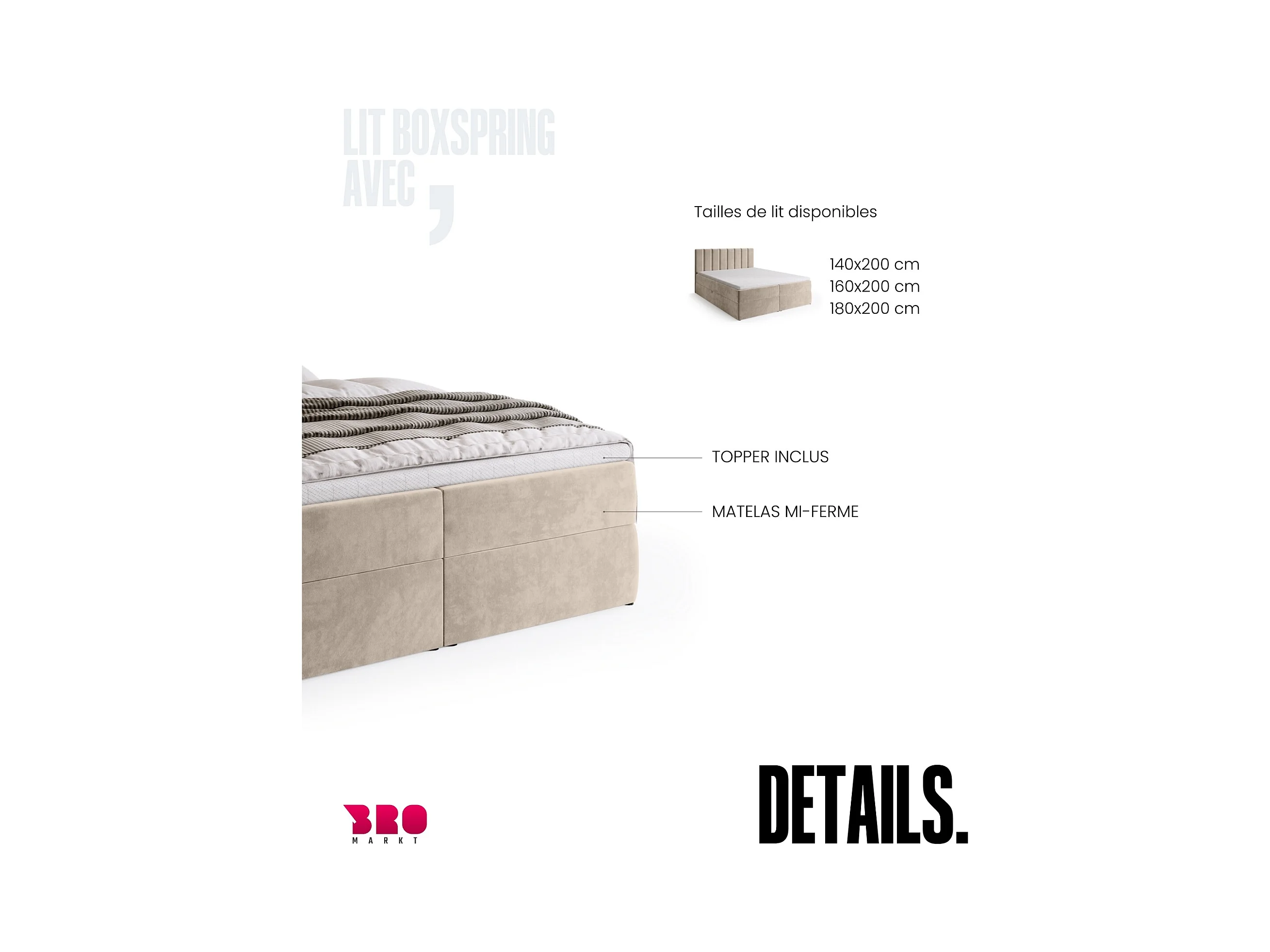 Lit boxspring avec rangement DENVER - matelas - surmatelas - beige - 140x200 cm