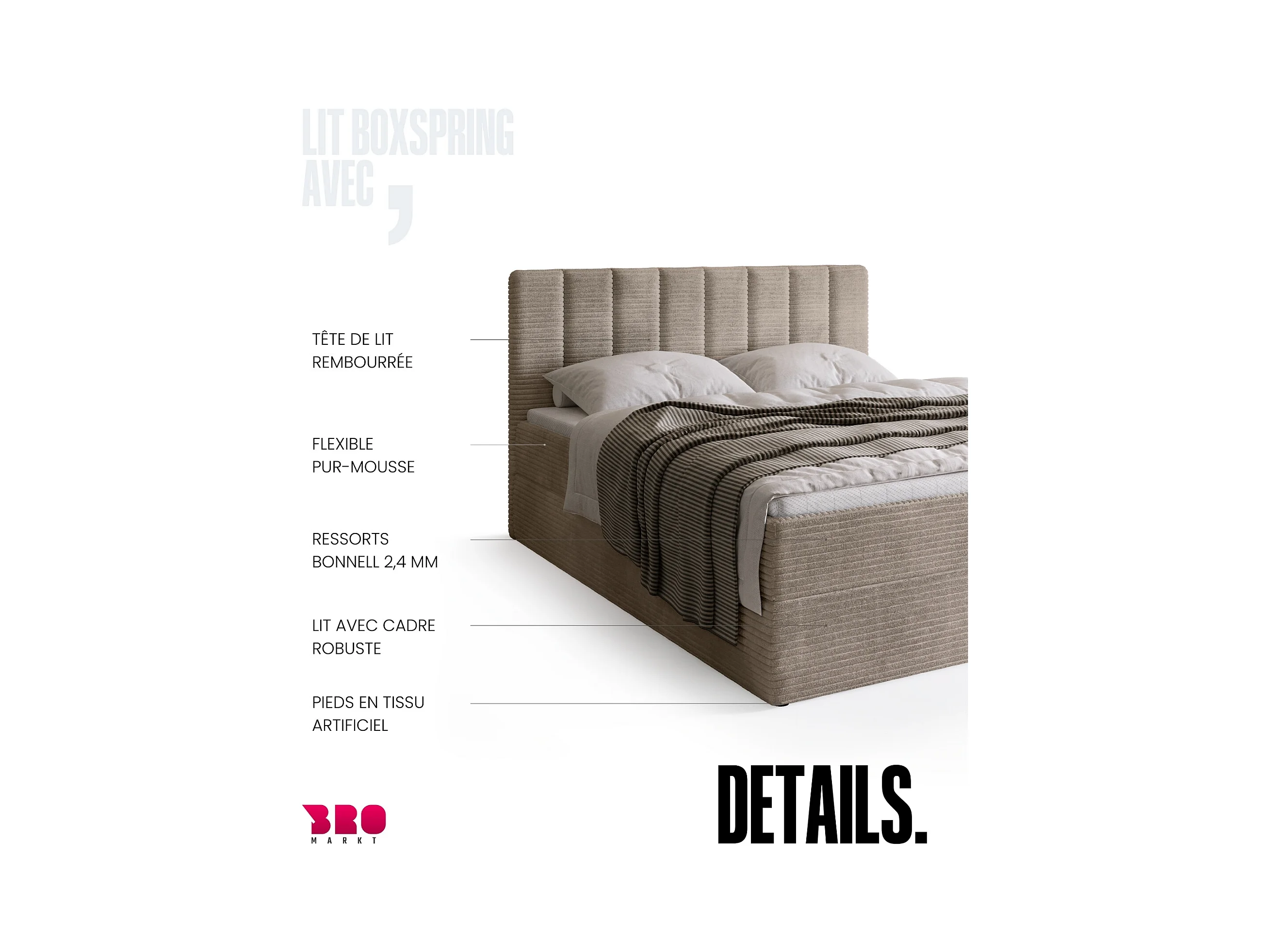 Lit boxspring avec rangement DENVER - matelas - surmatelas - beige - velours côtelé - 160x200 cm