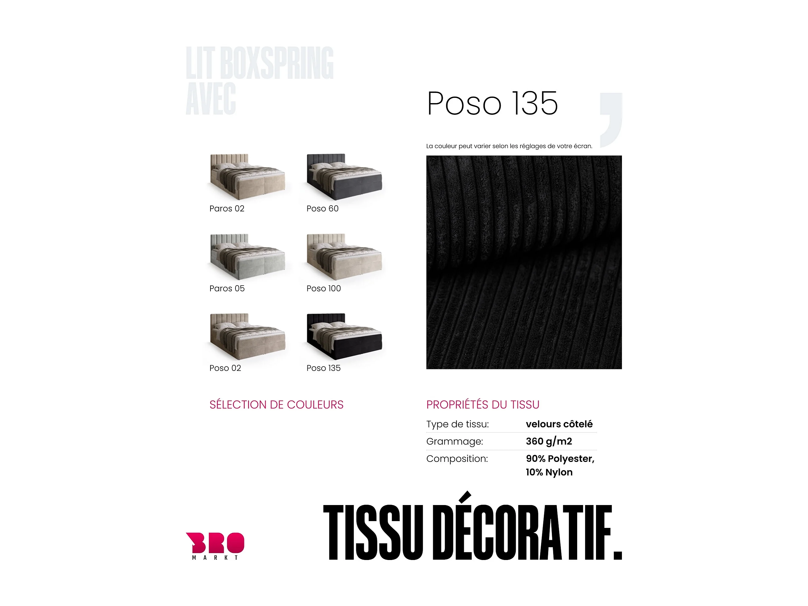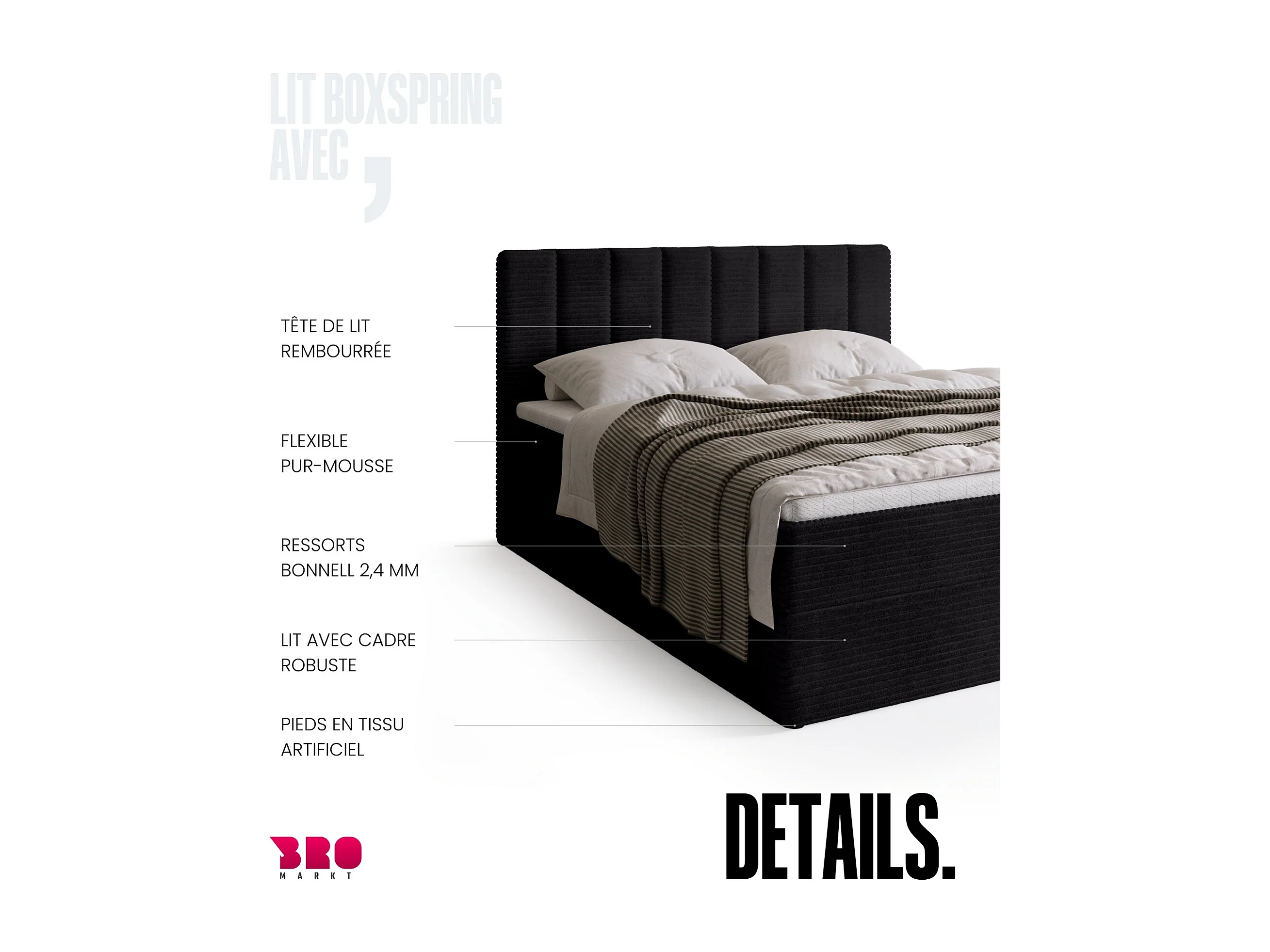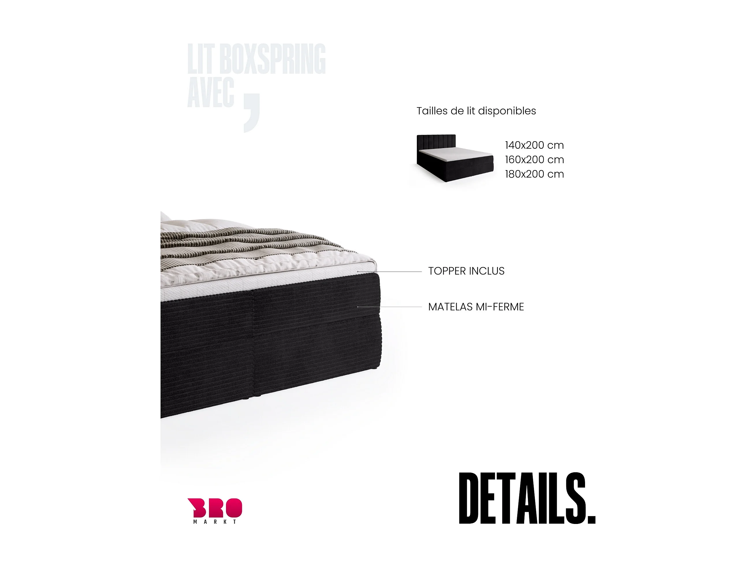 Lit boxspring avec rangement DENVER - matelas - surmatelas - noir - velours côtelé - 140x200 cm
