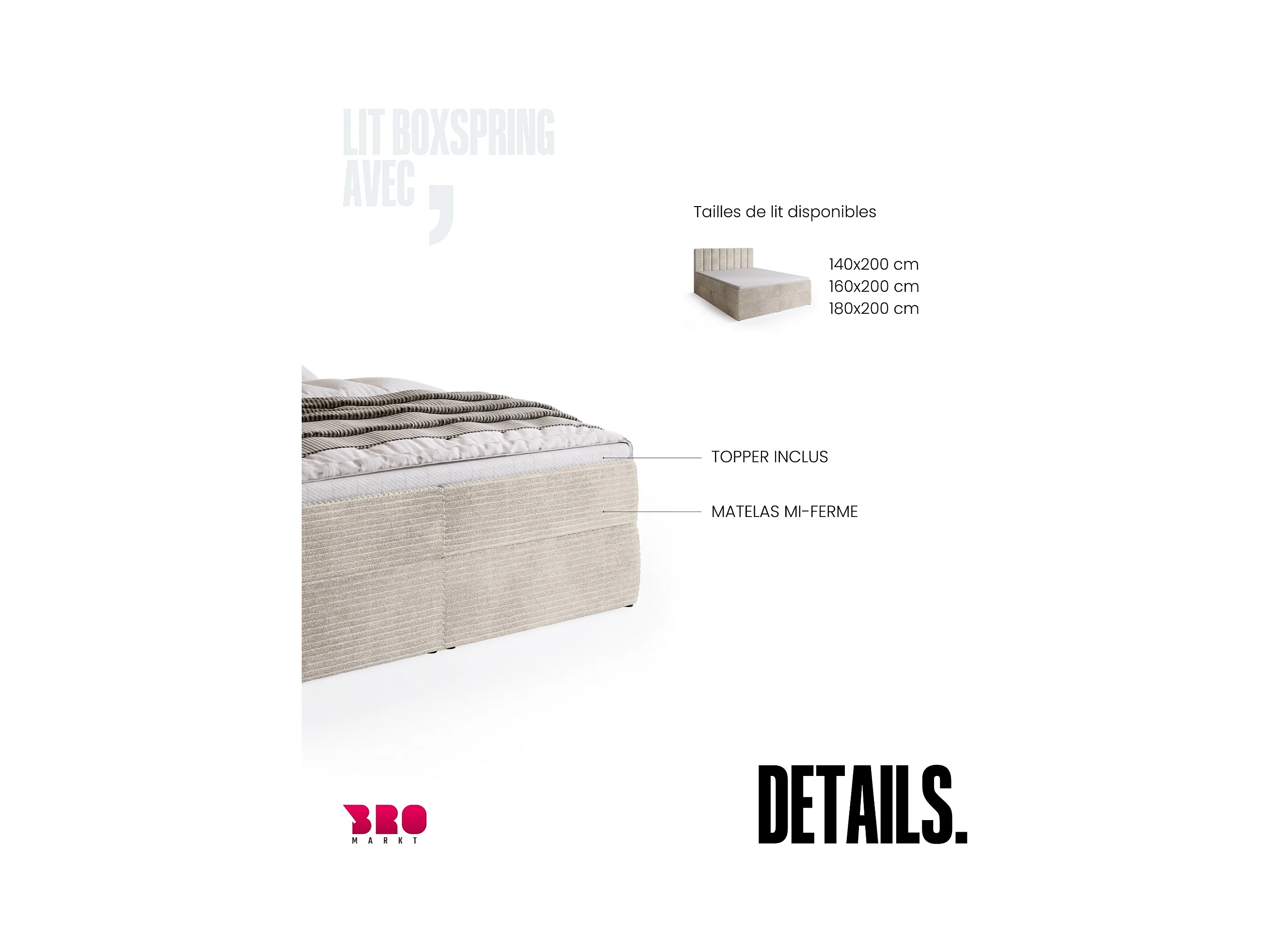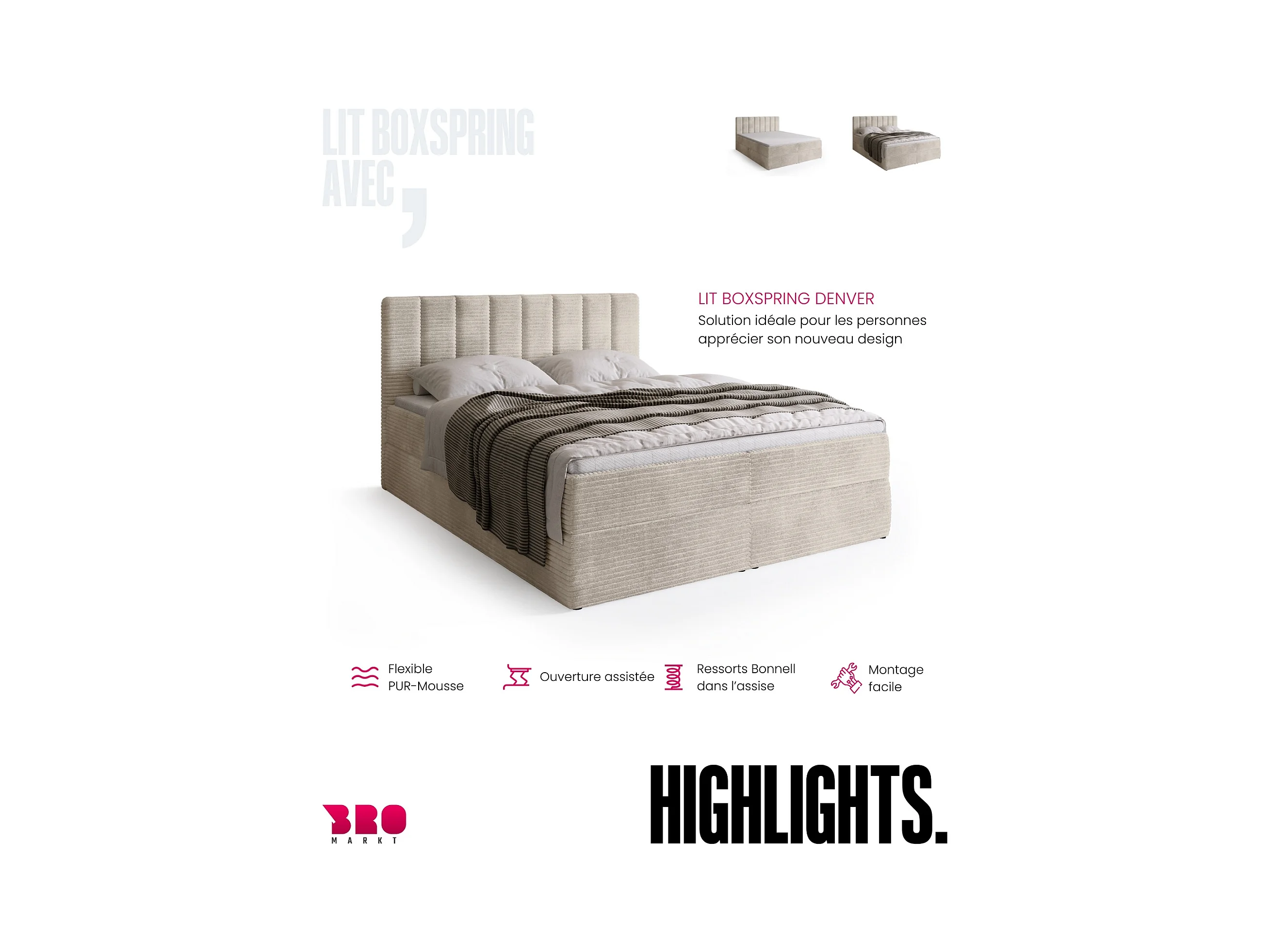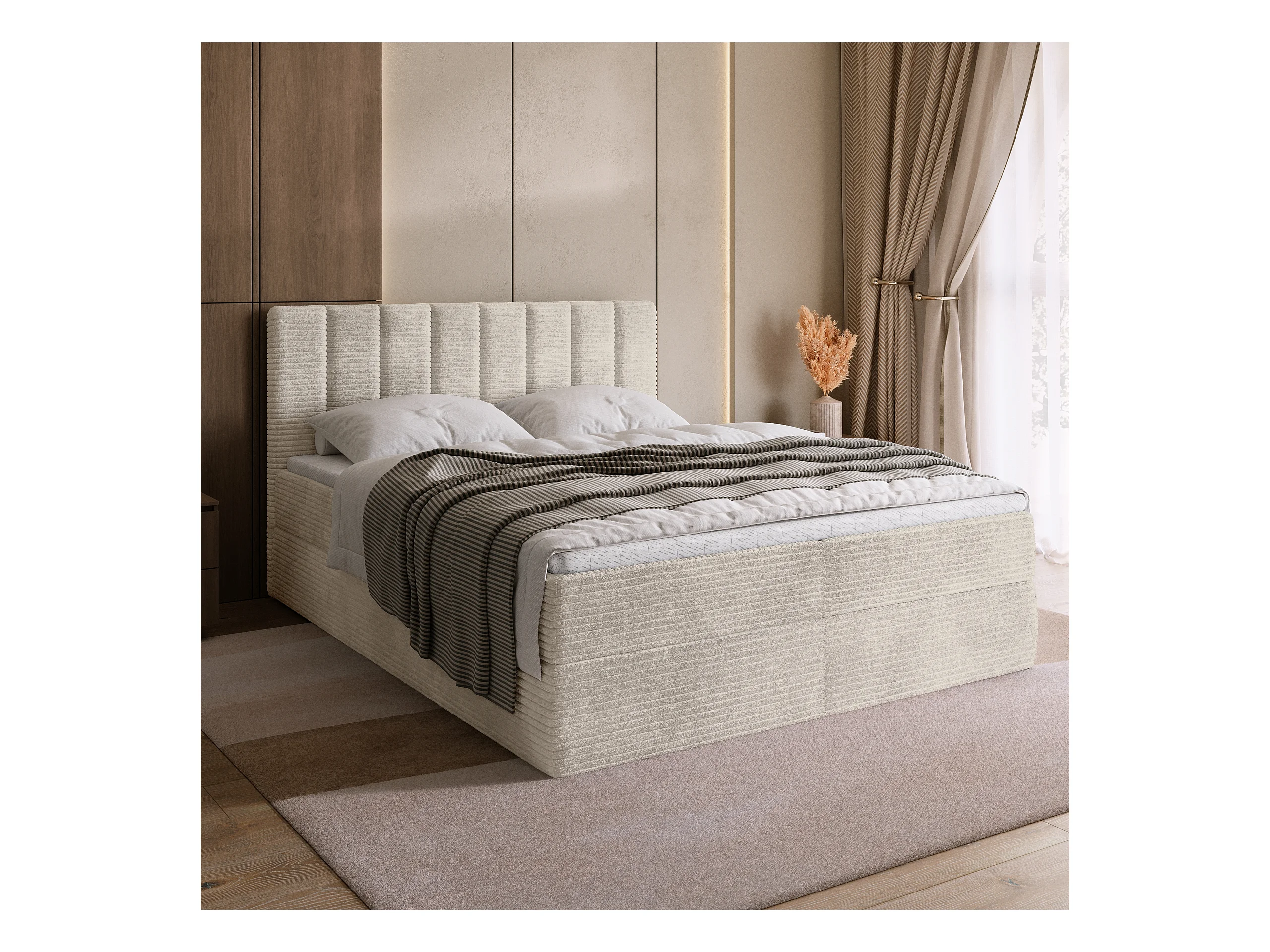Lit boxspring avec rangement DENVER - matelas - surmatelas - vanille - velours côtelé - 160x200 cm