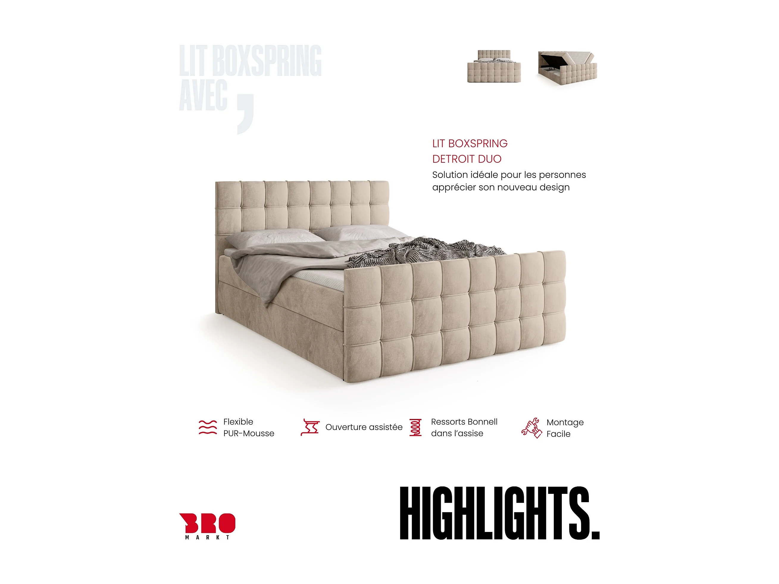 Lit boxspring avec rangement DETROIT DUO - matelas - surmatelas - camel - 140x200 cm