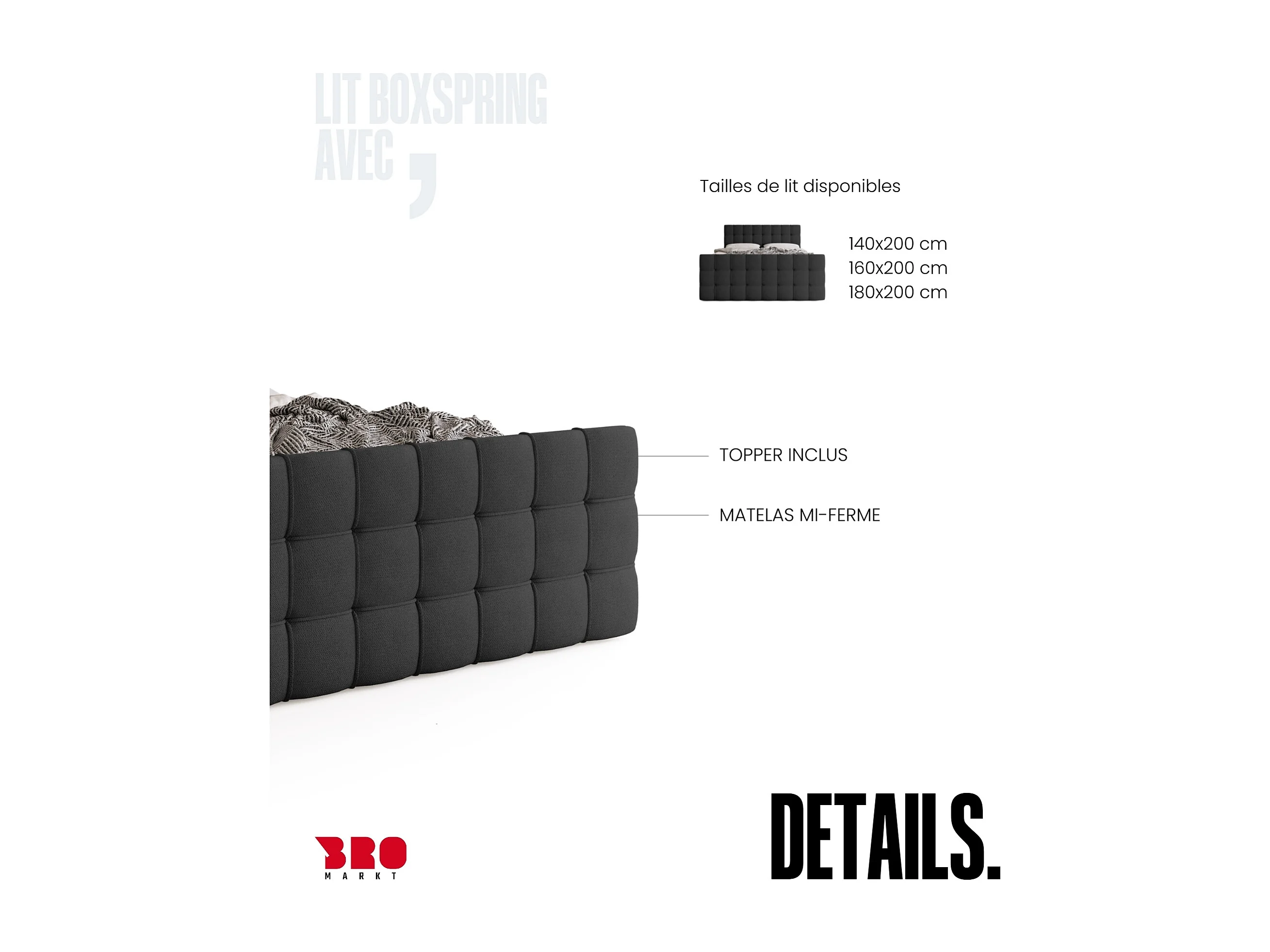 Lit boxspring avec rangement DETROIT DUO - matelas - surmatelas - gris foncé - 180x200 cm