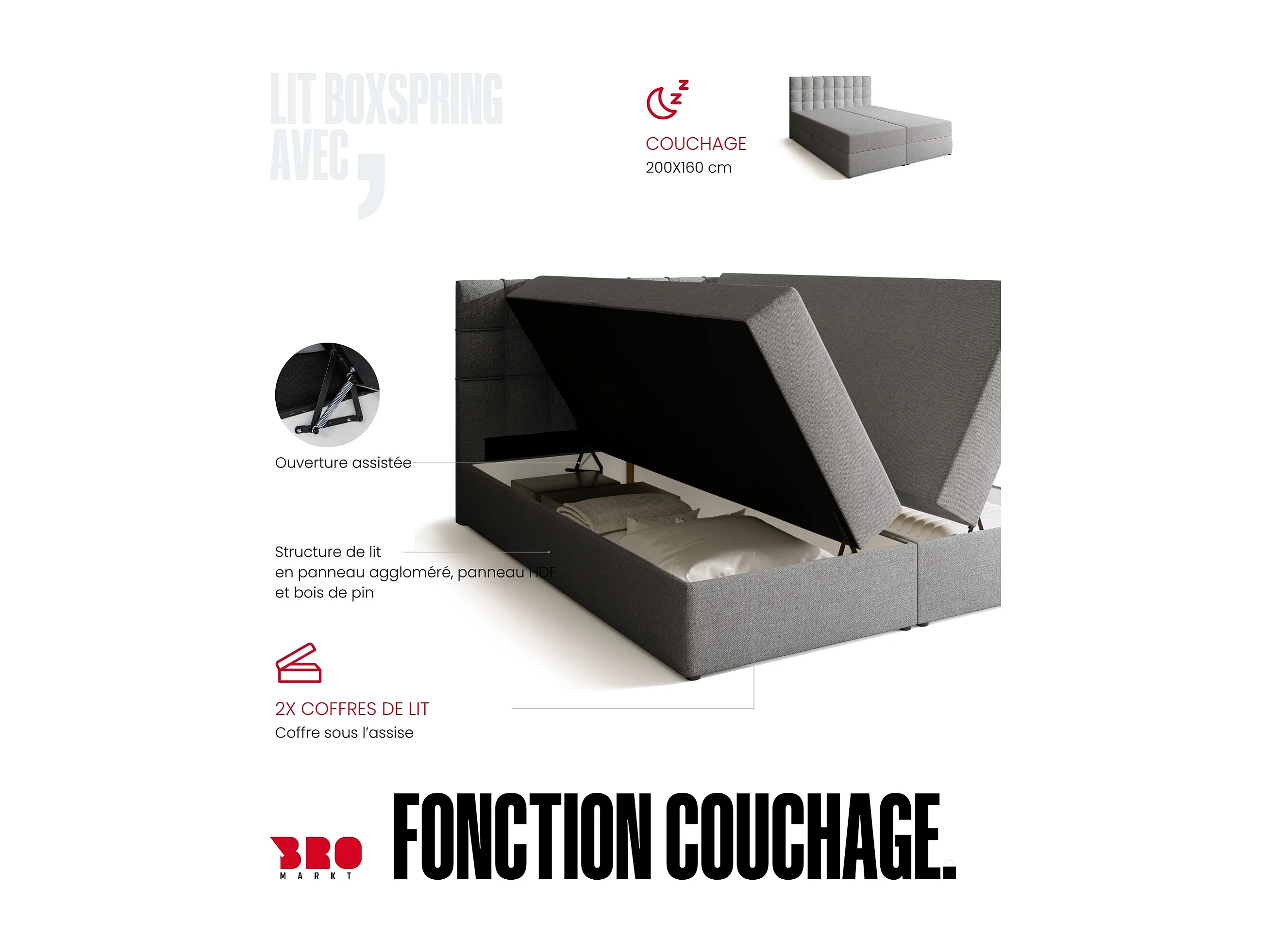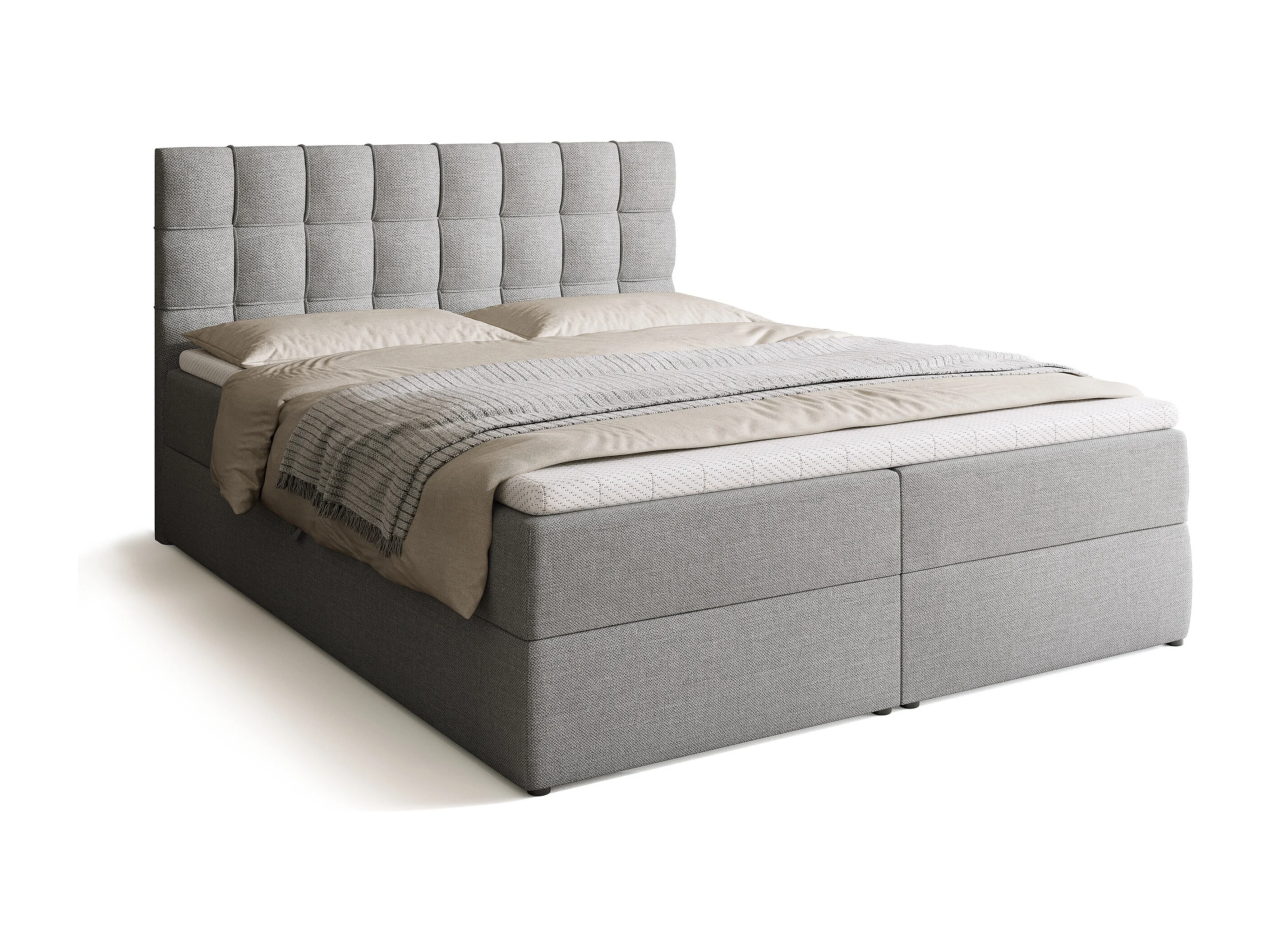 Lit boxspring avec rangement DETROIT - matelas - surmatelas - gris clair - 160x200 cm