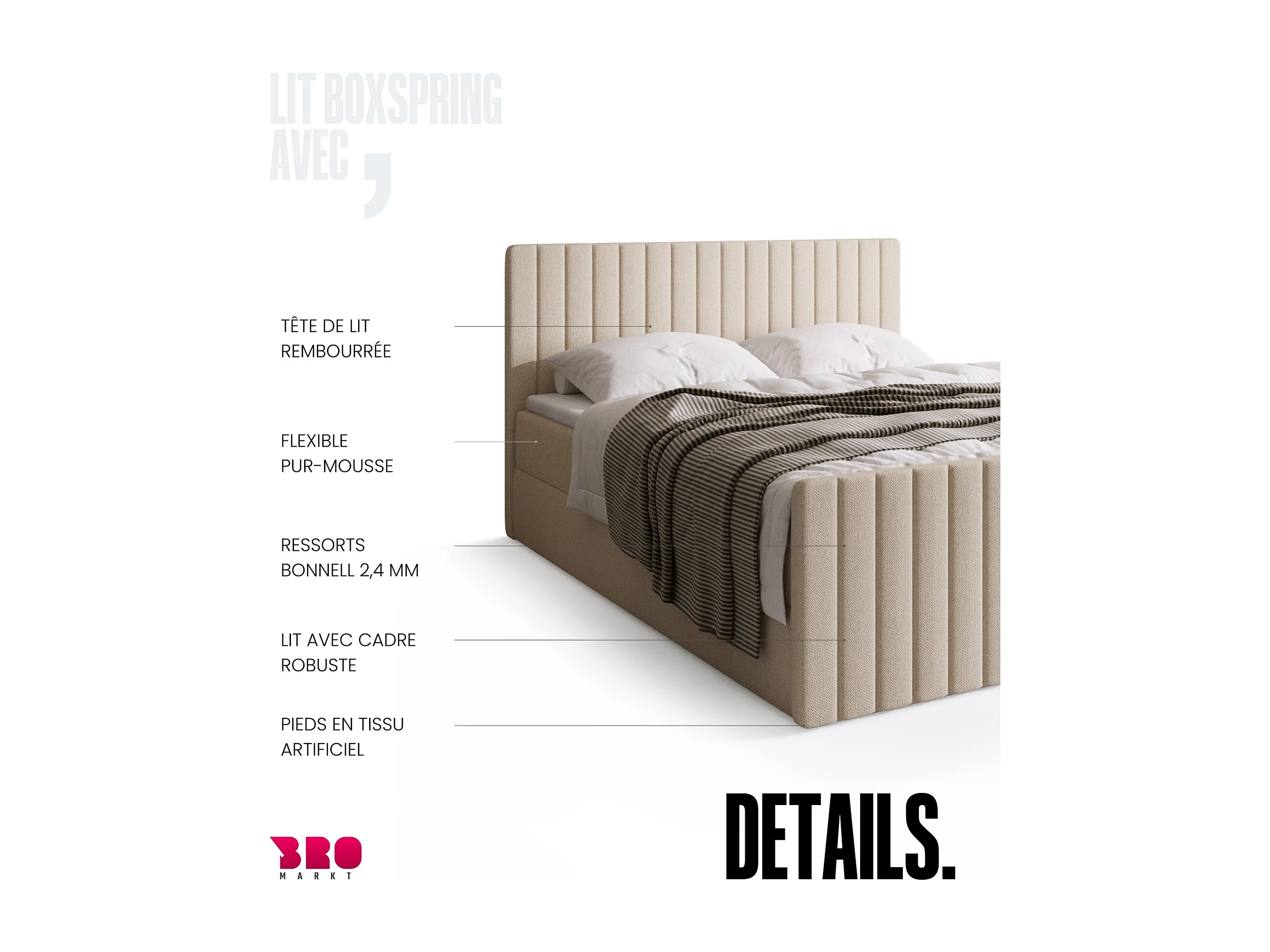 Lit boxspring avec rangement DREAM DUO - matelas - surmatelas - beige - 180x200 cm