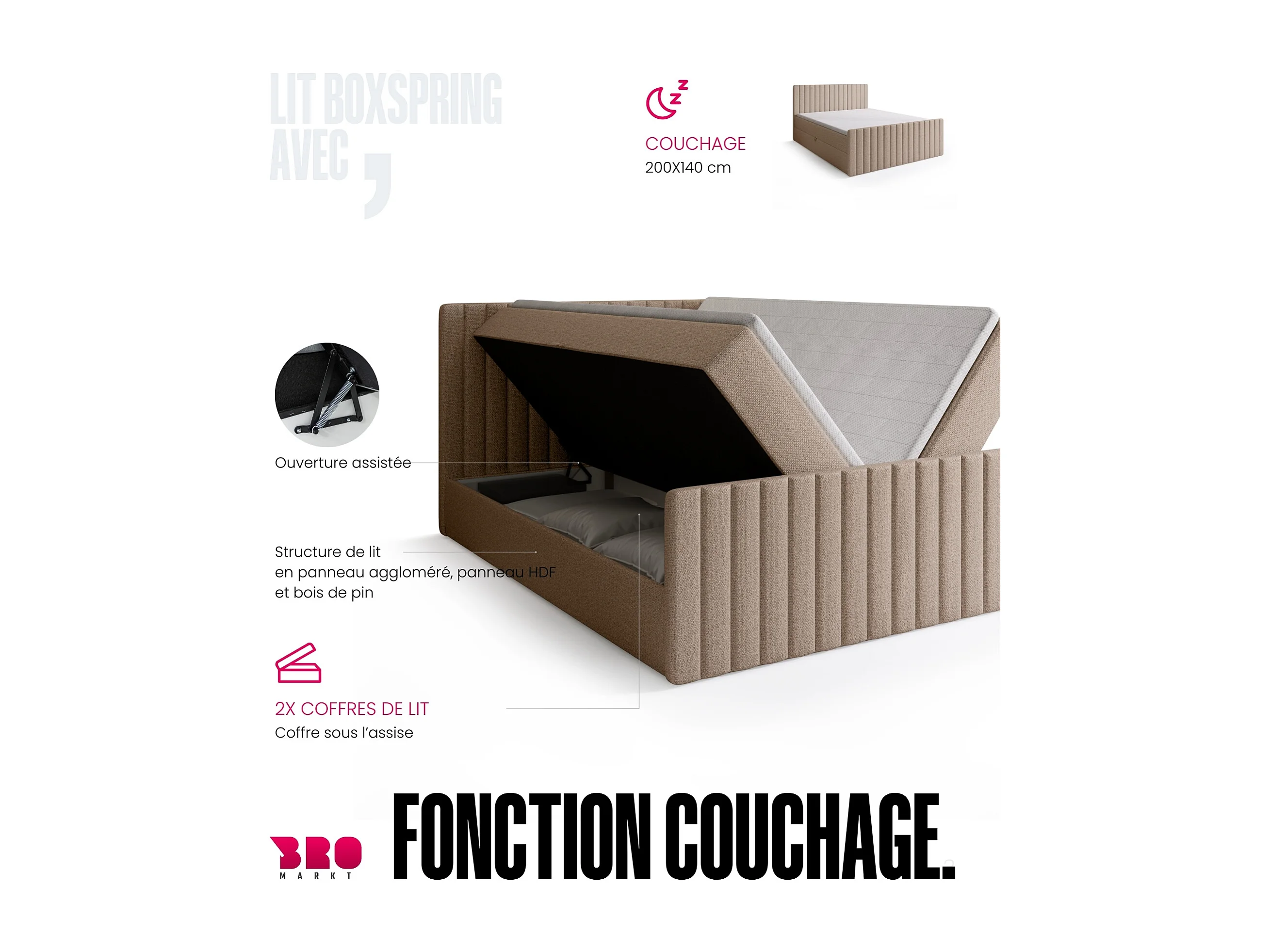 Lit boxspring avec rangement DREAM DUO - matelas - surmatelas - crème - 140x200 cm