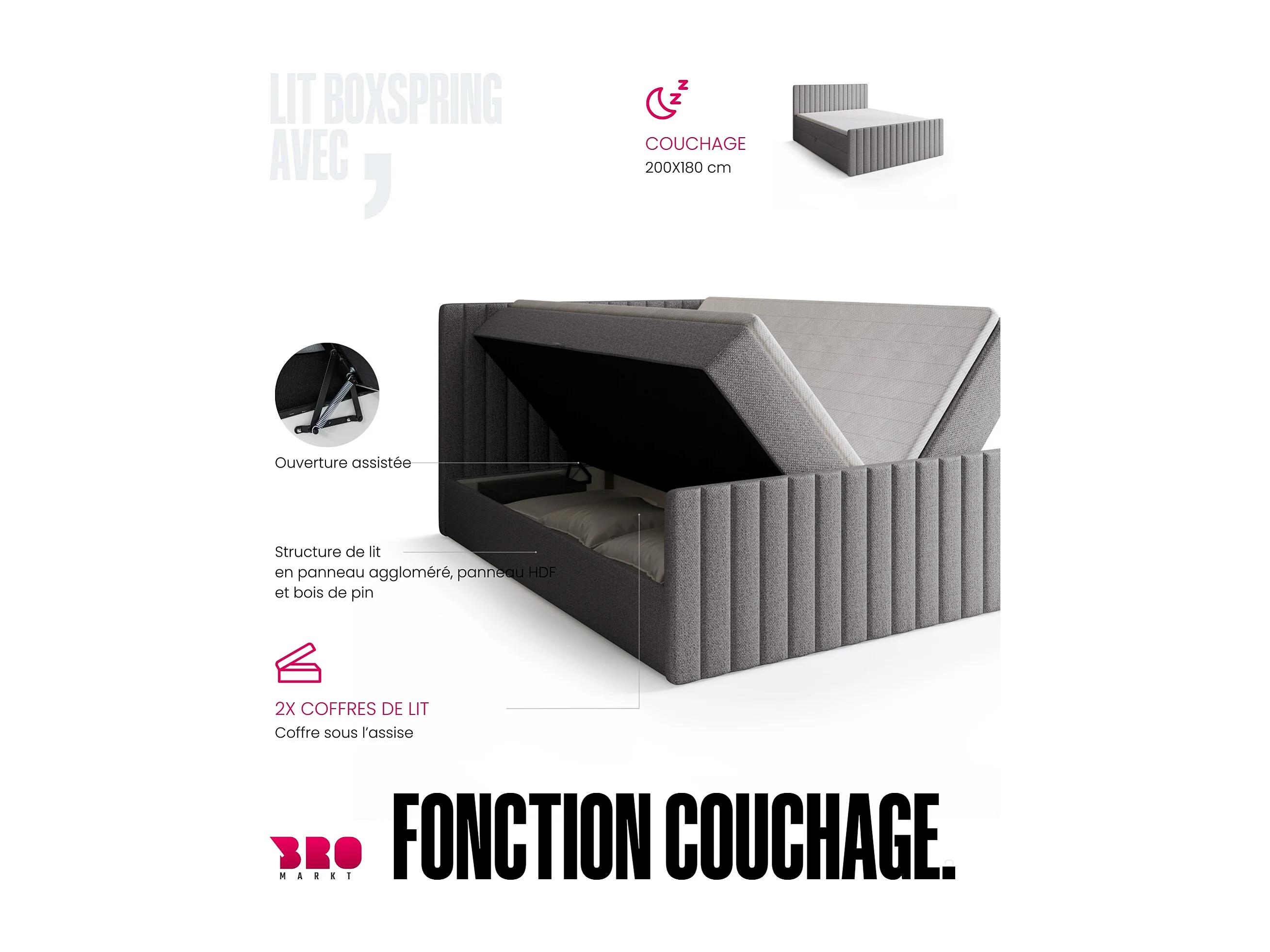 Lit boxspring avec rangement DREAM DUO - matelas - surmatelas - gris clair - 180x200 cm