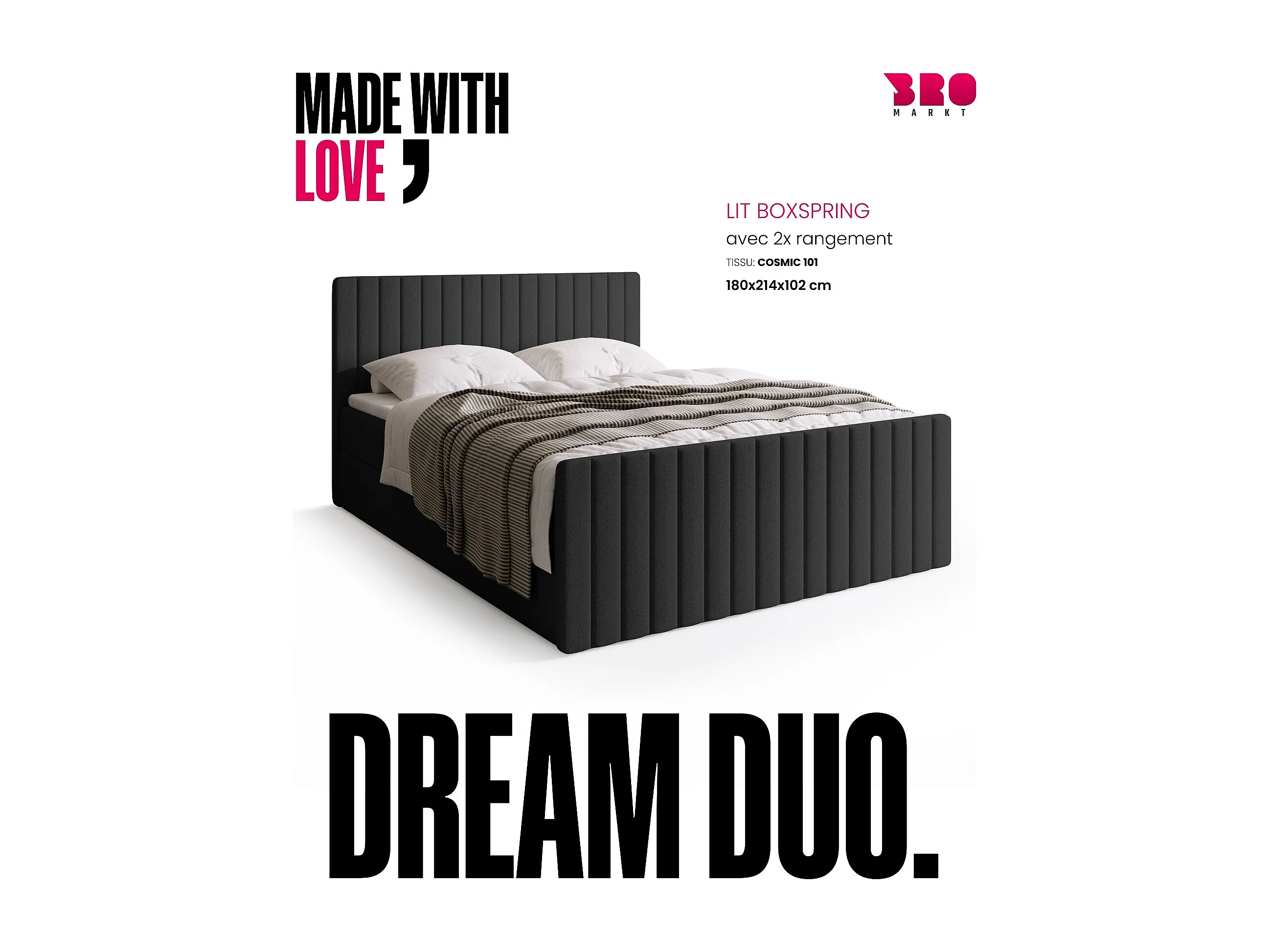 Lit boxspring avec rangement DREAM DUO - matelas - surmatelas - gris foncé - 180x200 cm