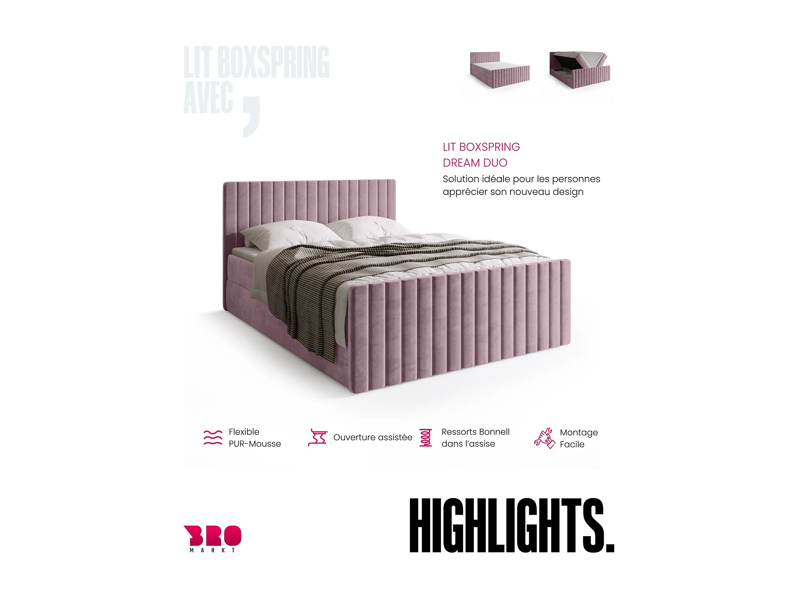 Lit boxspring avec rangement DREAM DUO - matelas - surmatelas - rose poudré - 180x200 cm