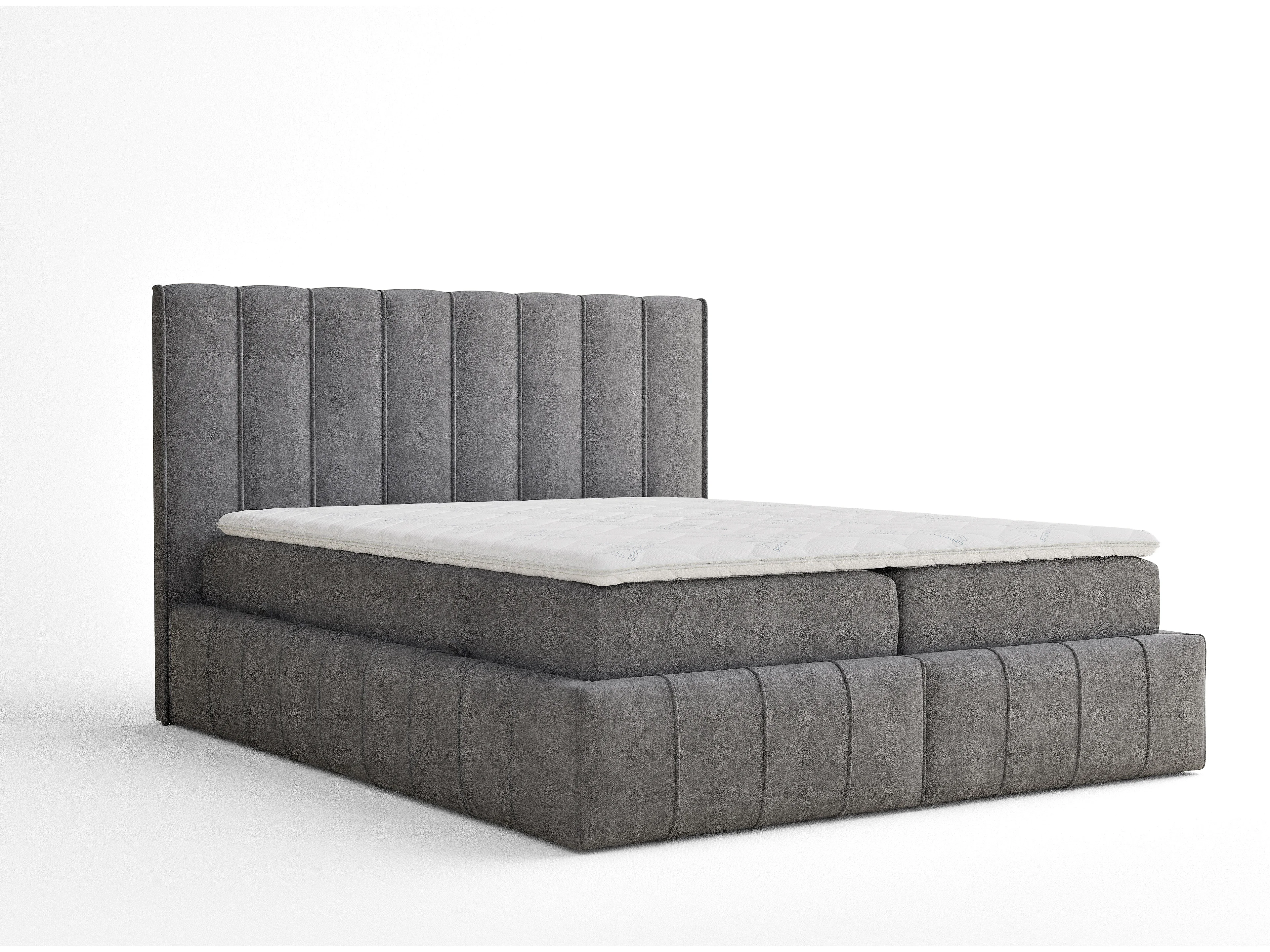 Lit boxspring avec rangement MORETTI - matelas - surmatelas - 140x200 cm - gris