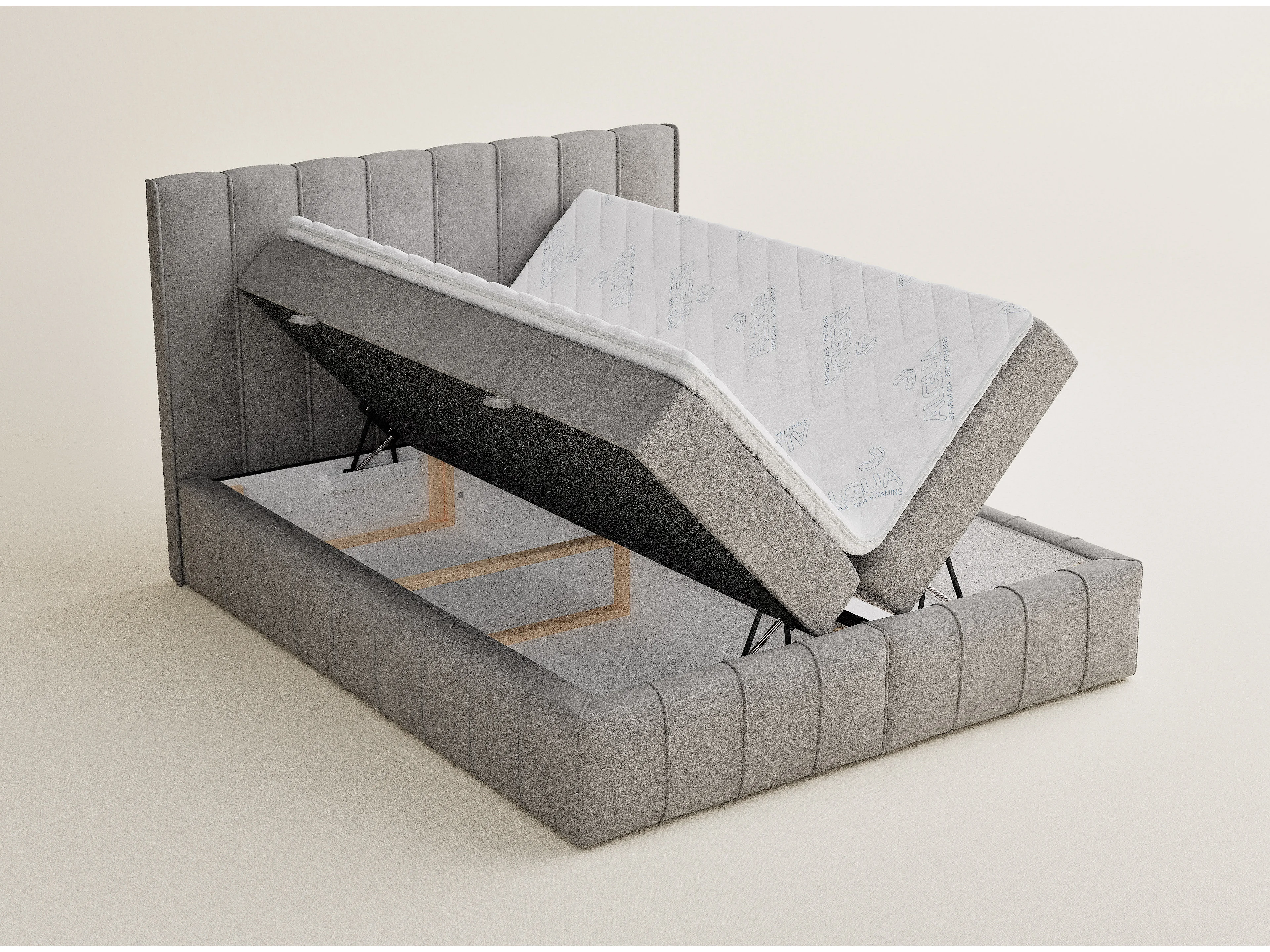 Lit boxspring avec rangement MORETTI - matelas - surmatelas - 180x200 cm - beige gris