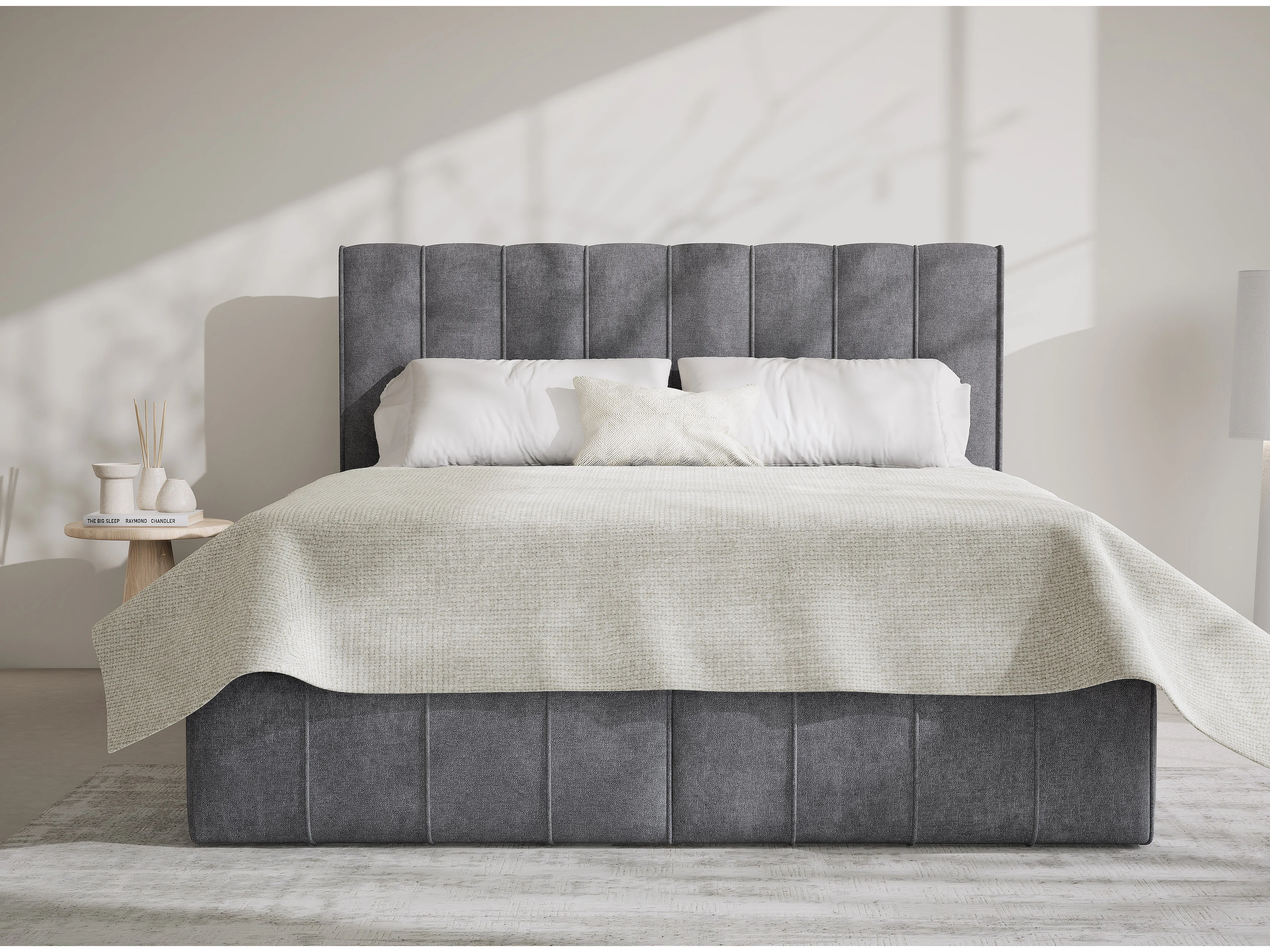 Lit boxspring avec rangement MORETTI - matelas - surmatelas - 180x200 cm - gris