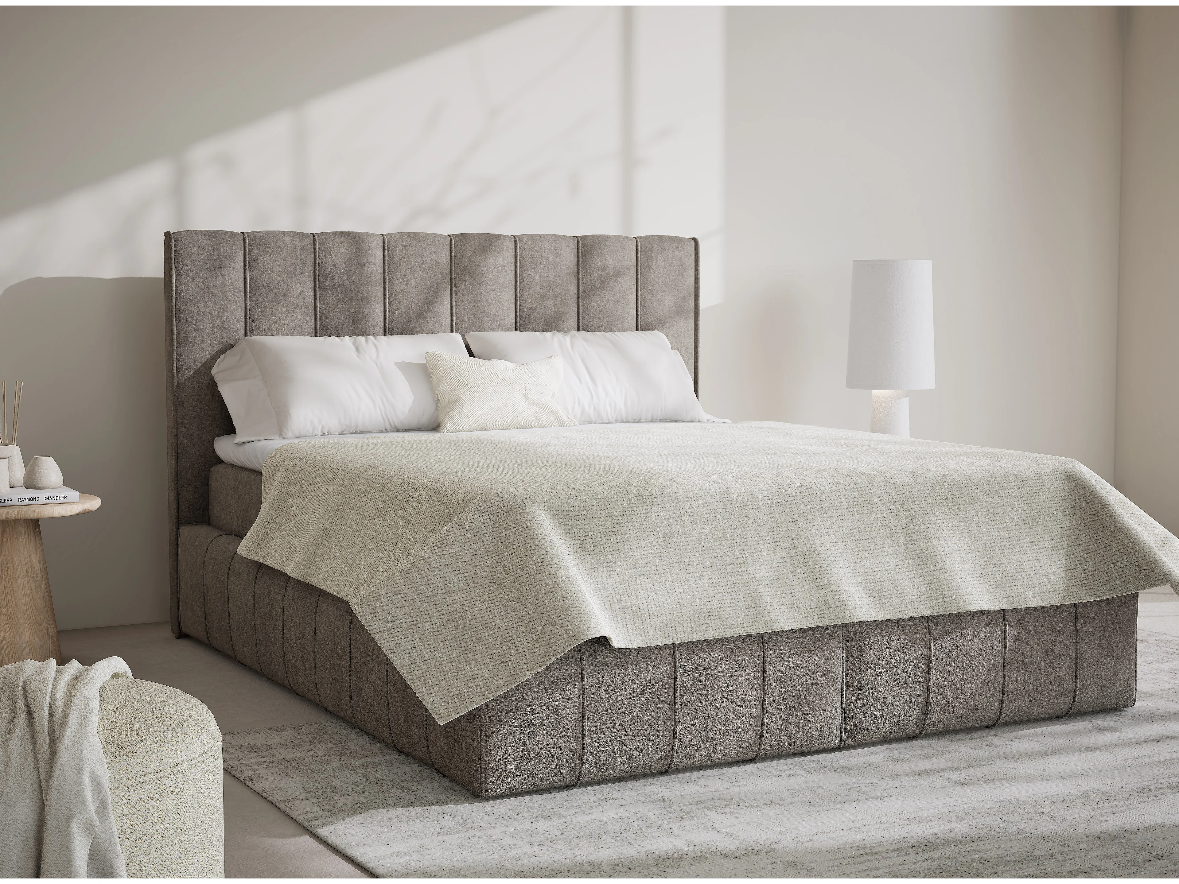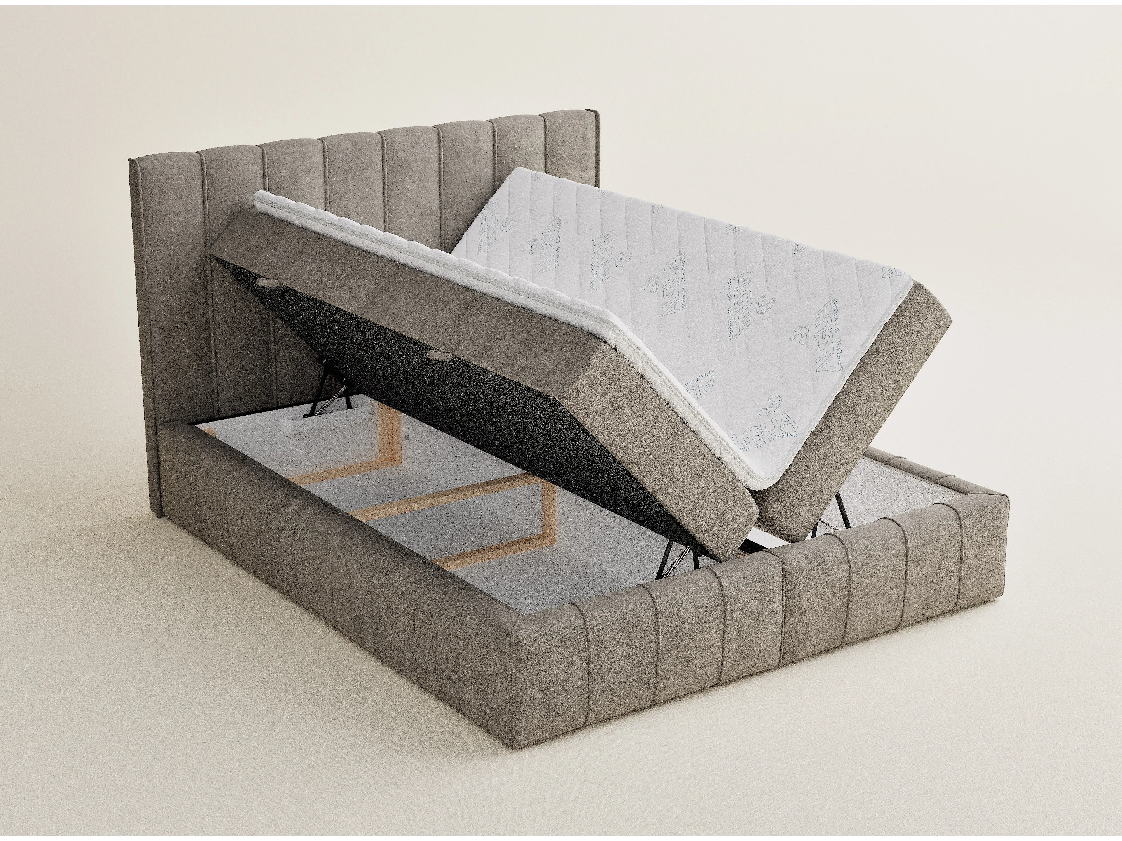 Lit boxspring avec rangement MORETTI - matelas - surmatelas - 200x200 cm - brun