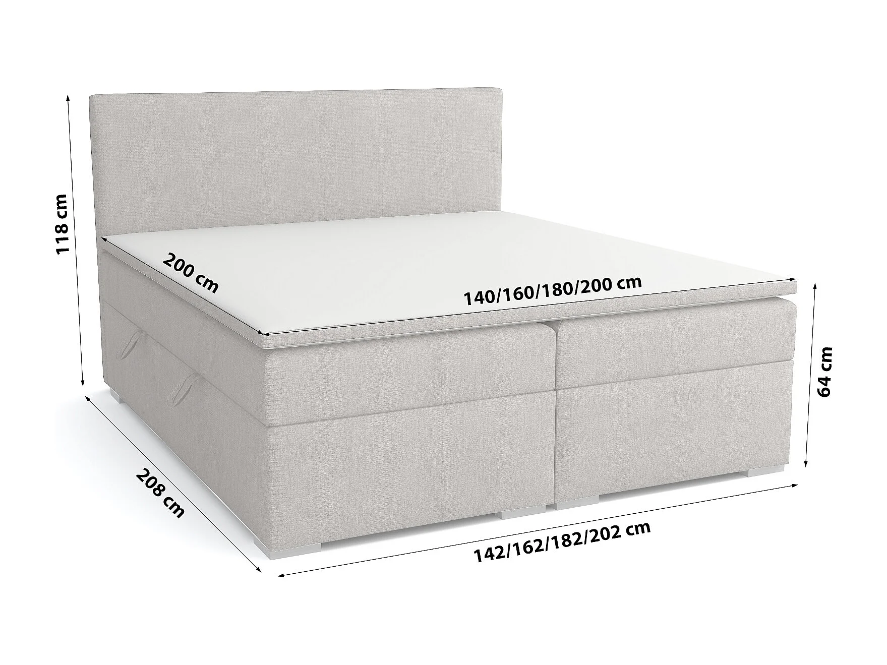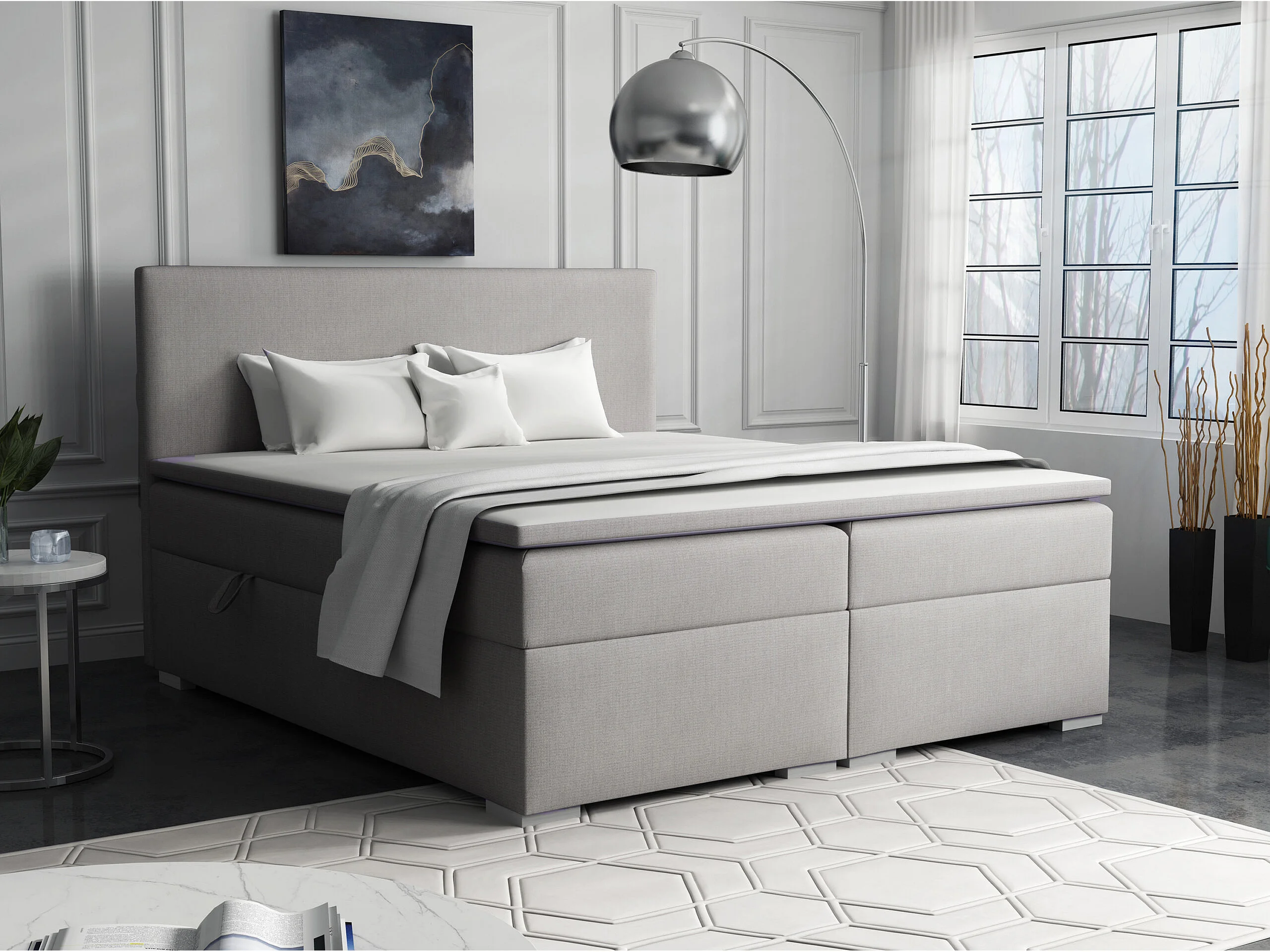 LIT BOXSPRING avec surmatelas Ennis 200x200 cm, Lux 05 (Gris clair)