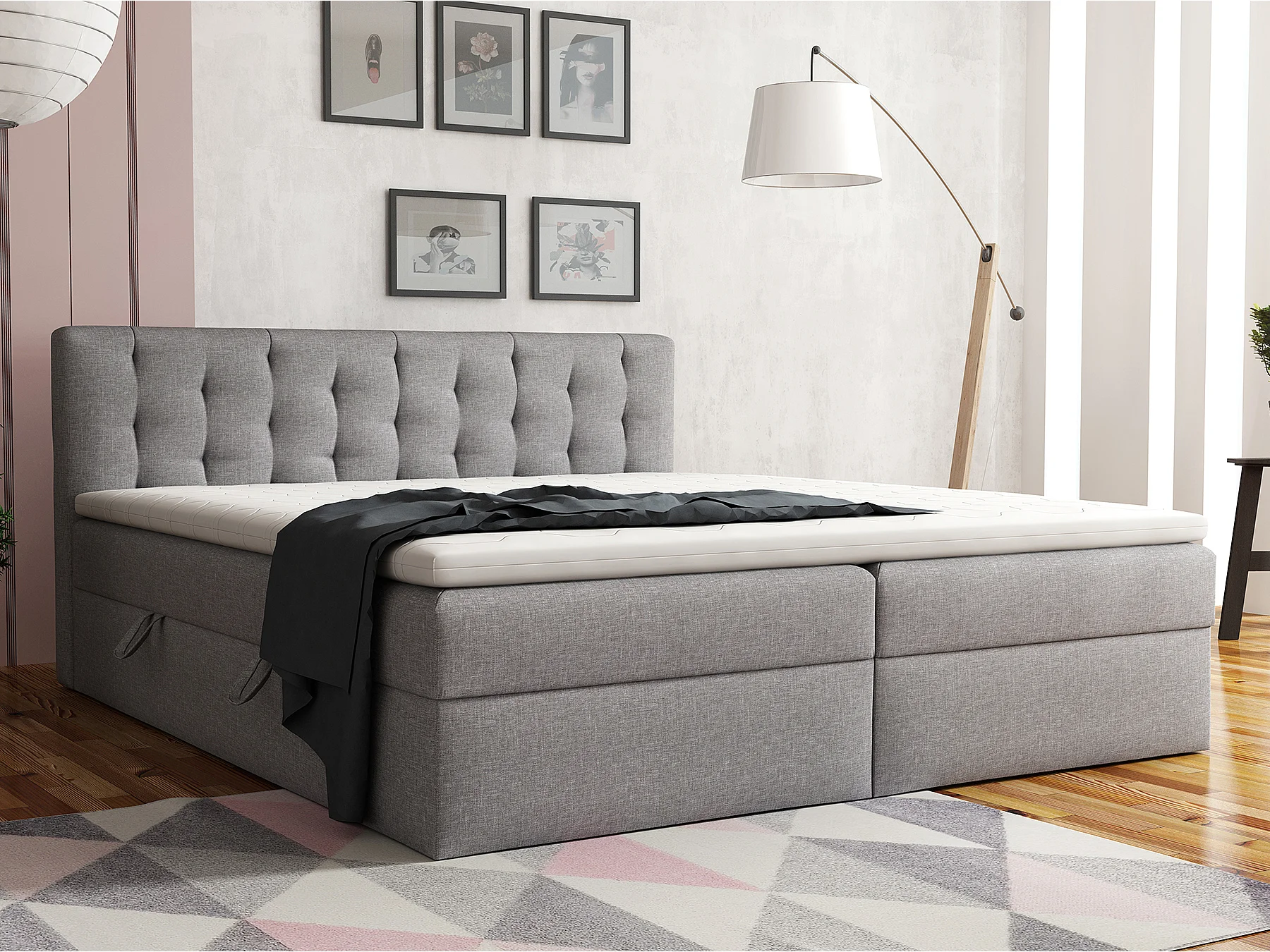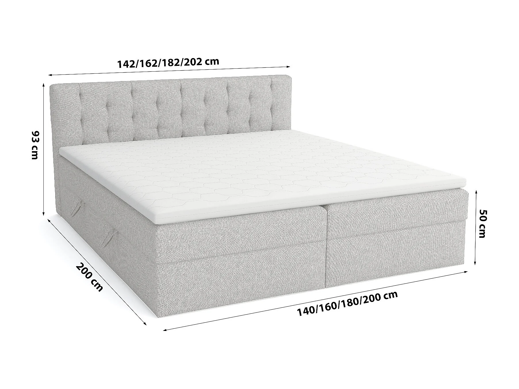 LIT BOXSPRING avec surmatelas Merano 160x200 cm, gris clair