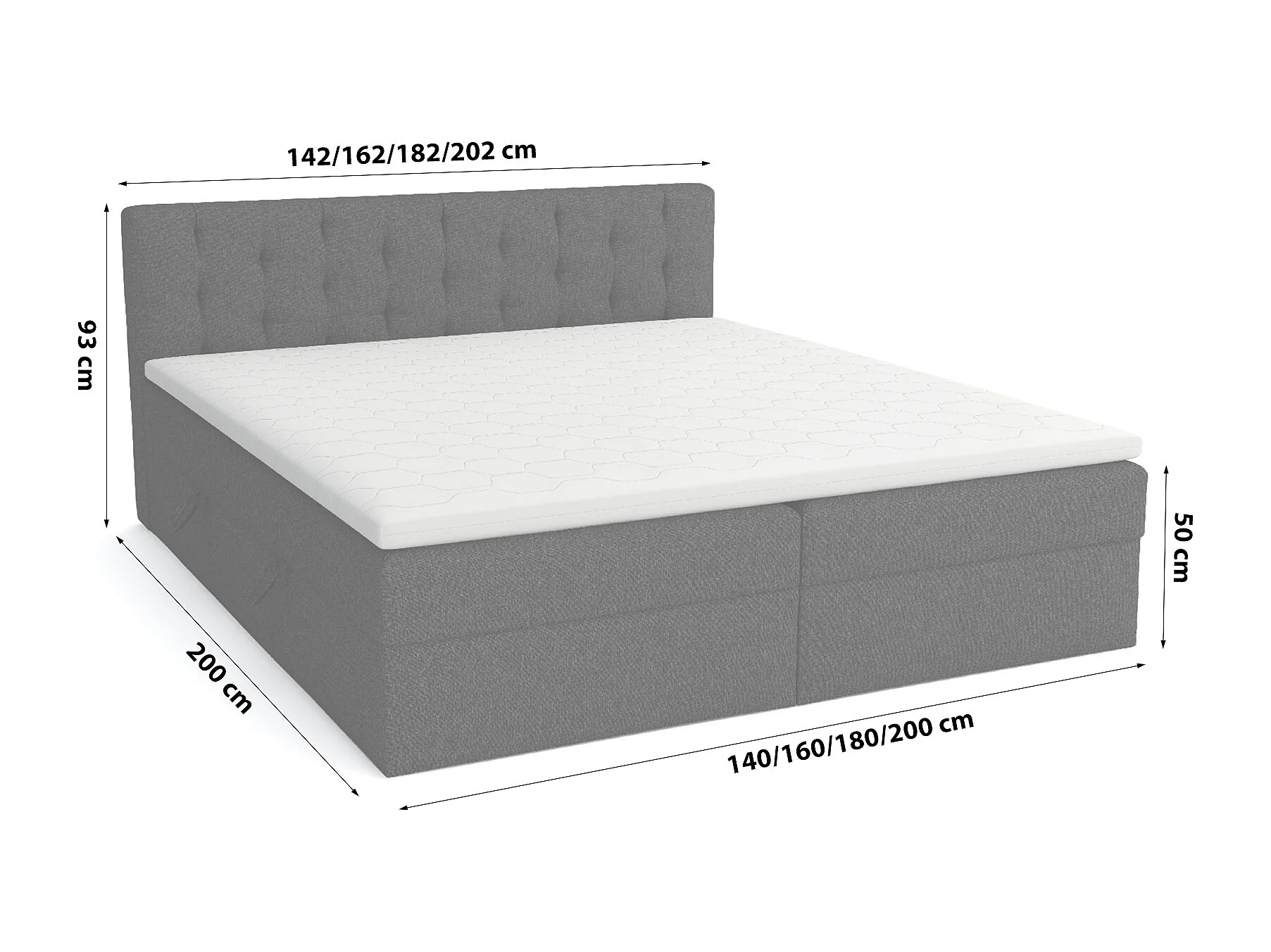 LIT BOXSPRING avec surmatelas Merano 200x200 cm, noir