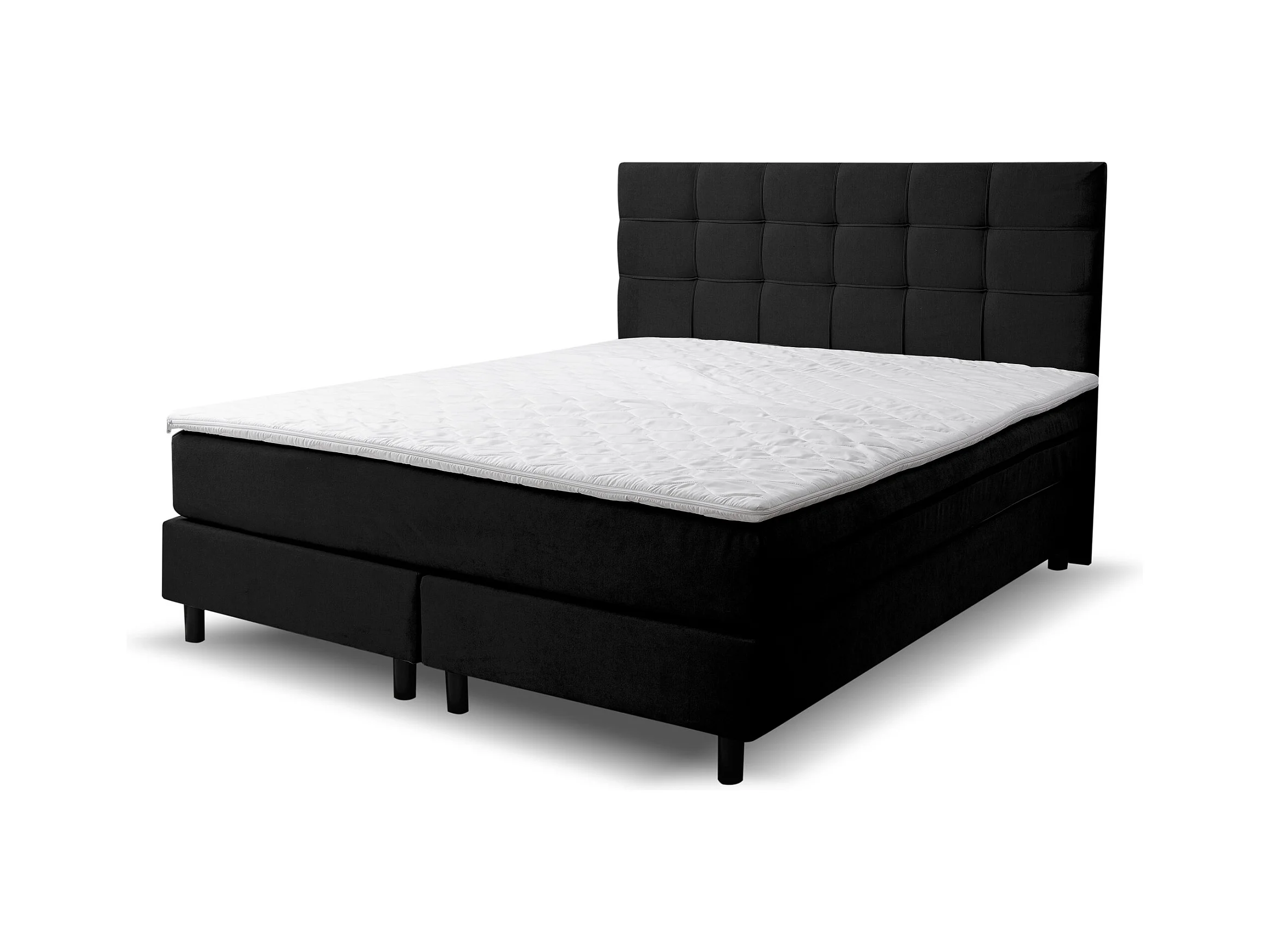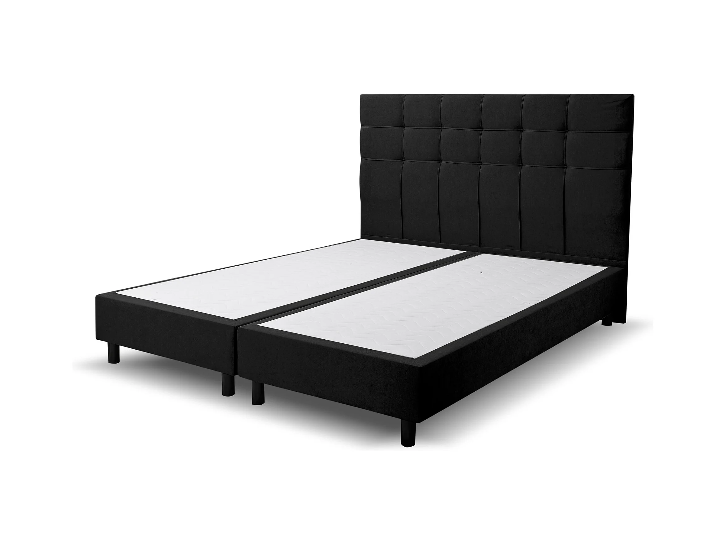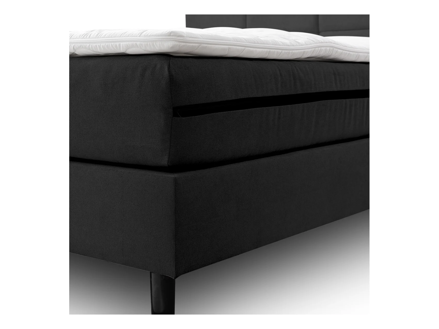 Lit boxspring BOSS, lit rembourré Dimensions : 180 x 200 cm, couleur : noir, tissu velours, lit double avec matelas Bonell H3 et surmatelas inclus