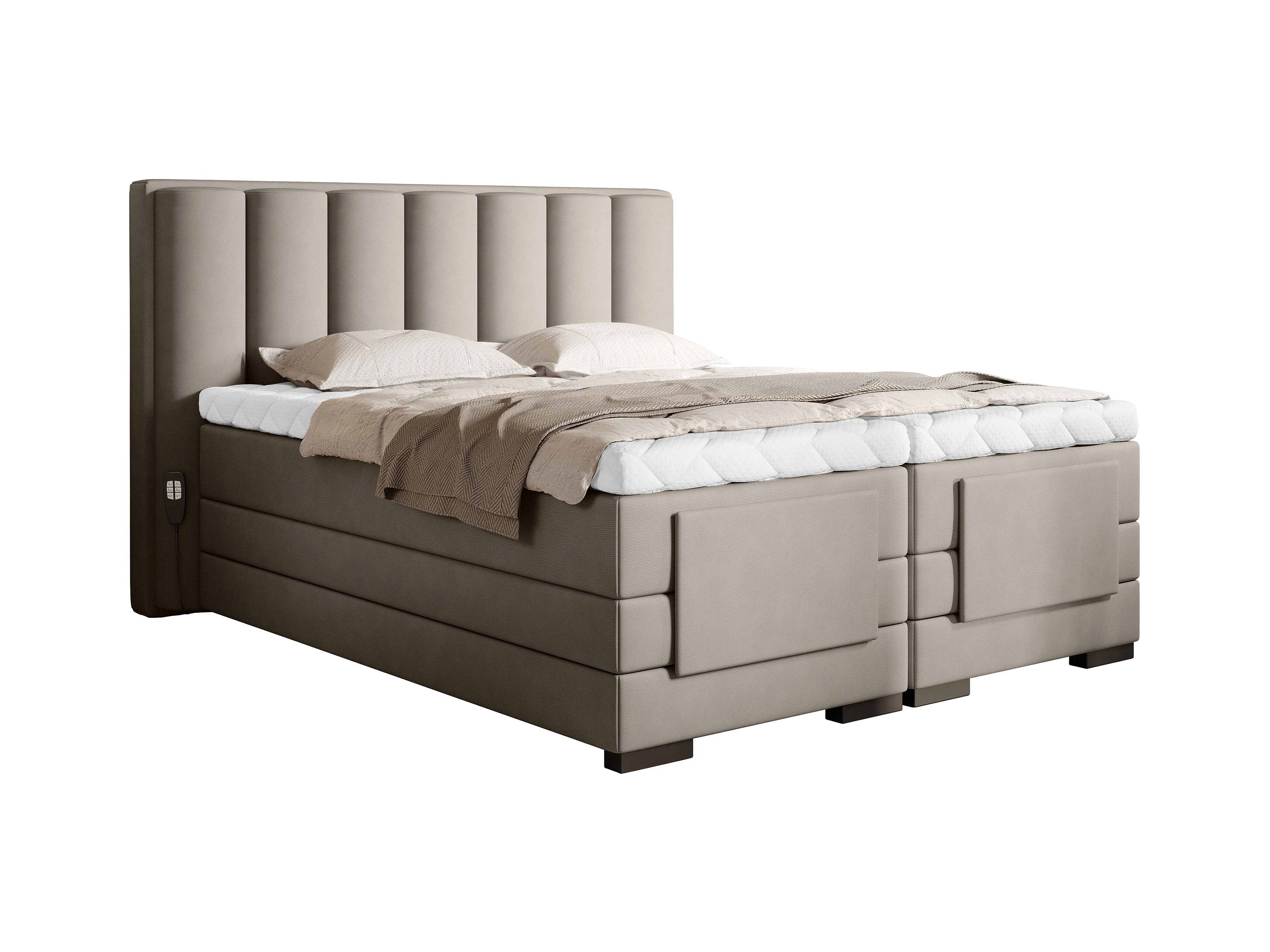 Lit boxspring électrique tissu beige clair avec matelas et surmatelas Arkos-160x200