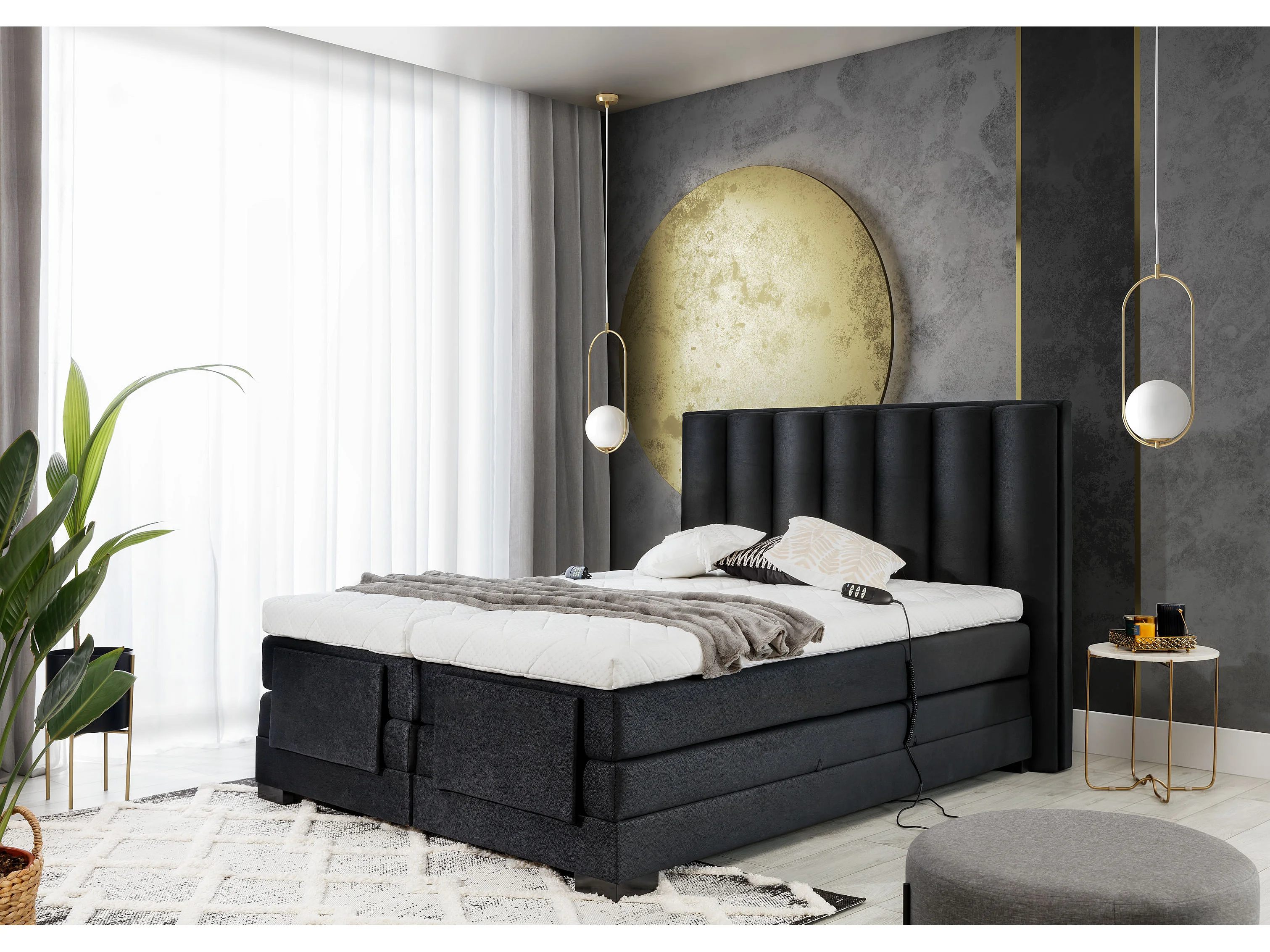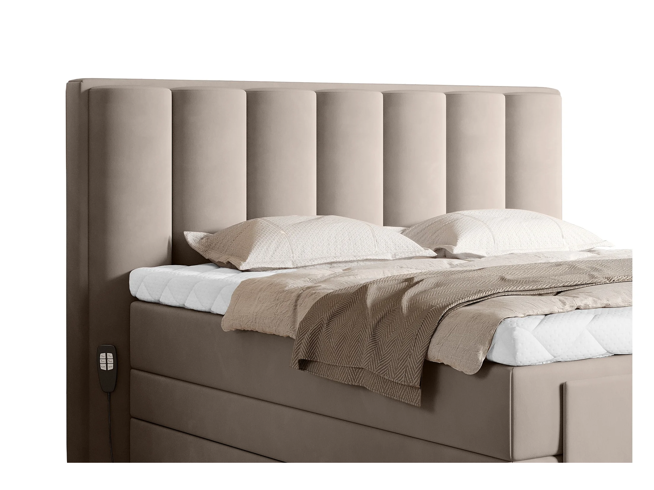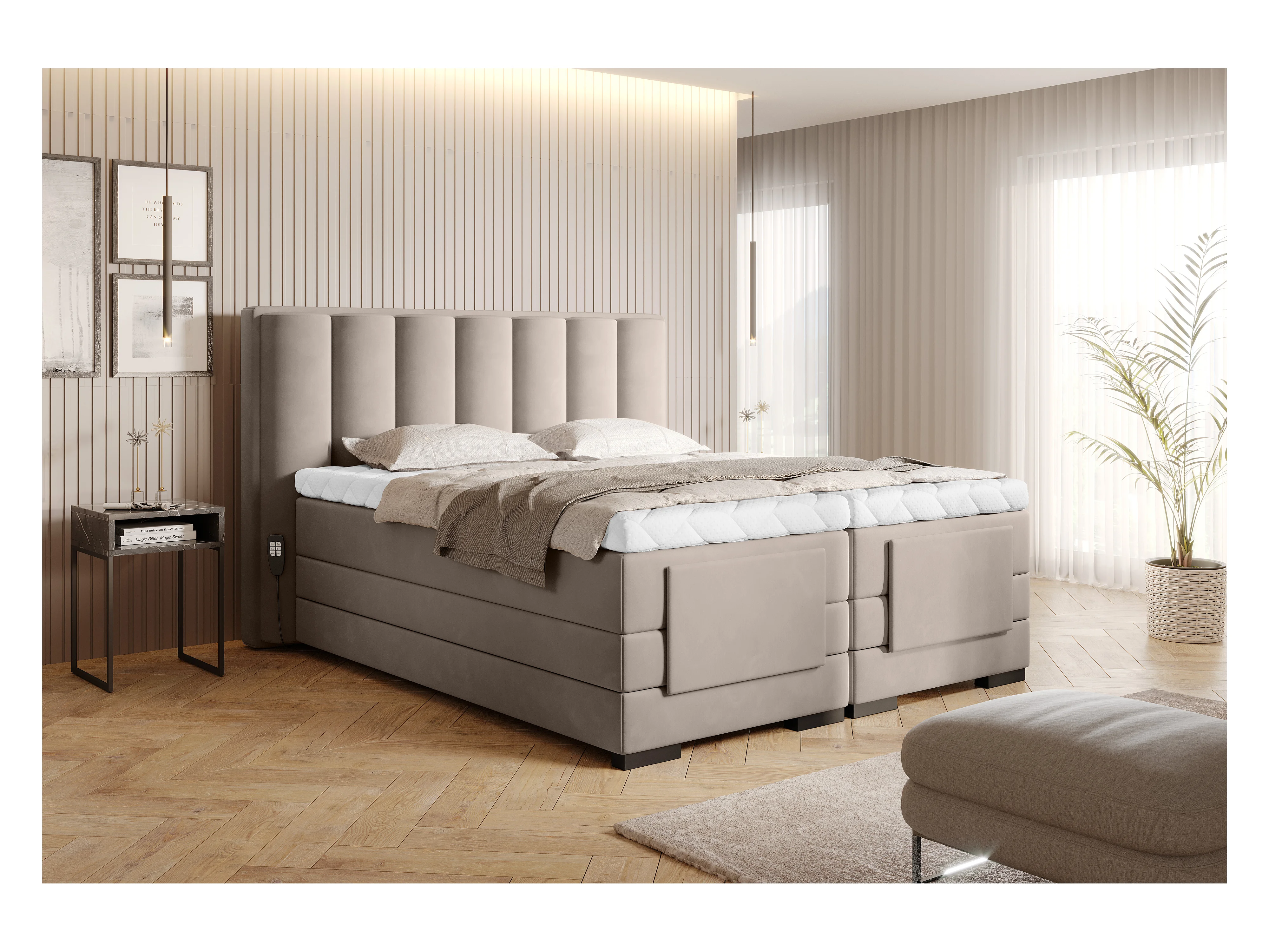 Lit boxspring électrique velours beige avec matelas et surmatelas Arkos-160x200