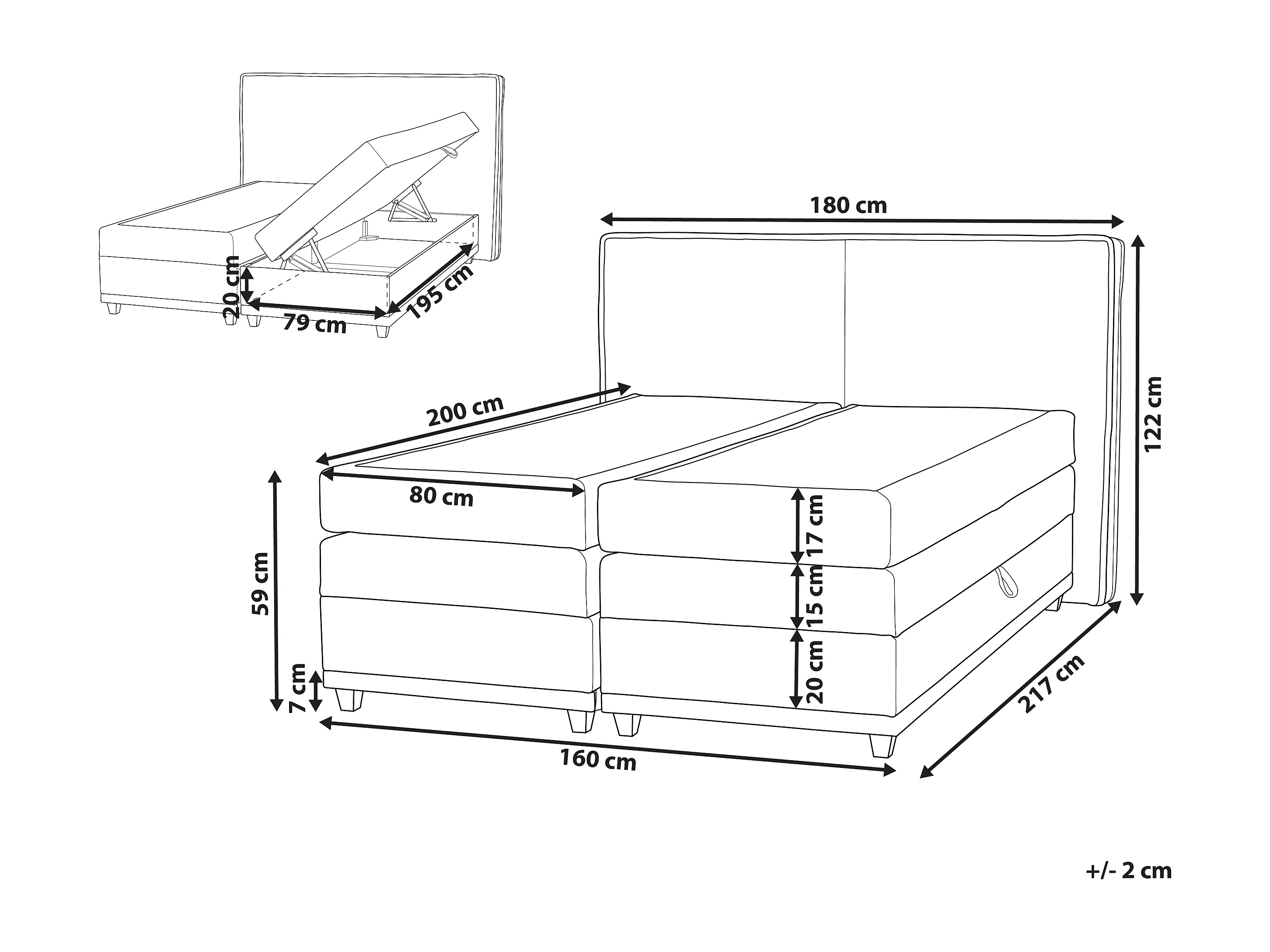 Lit boxspring avec rangement Tissu DYNASTY 160 x 200 cm Taupe
