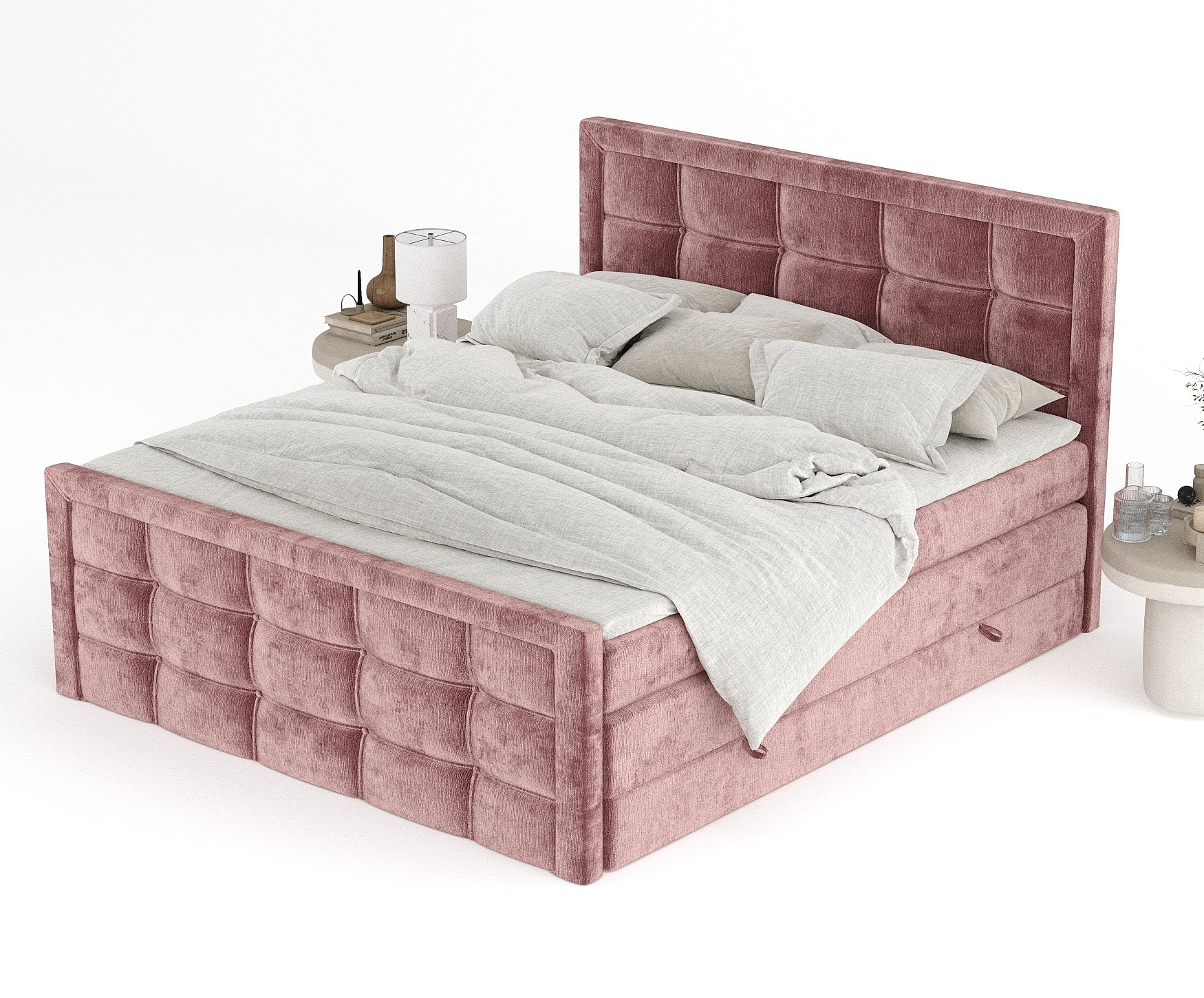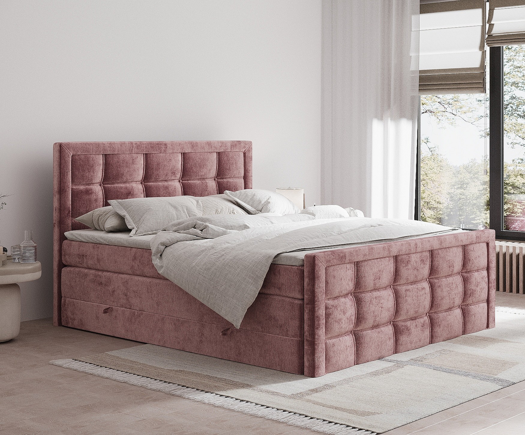 Lit boxspring en tissu chenille Ambrosia - matelas - surmatelas - 140x200 cm - rose