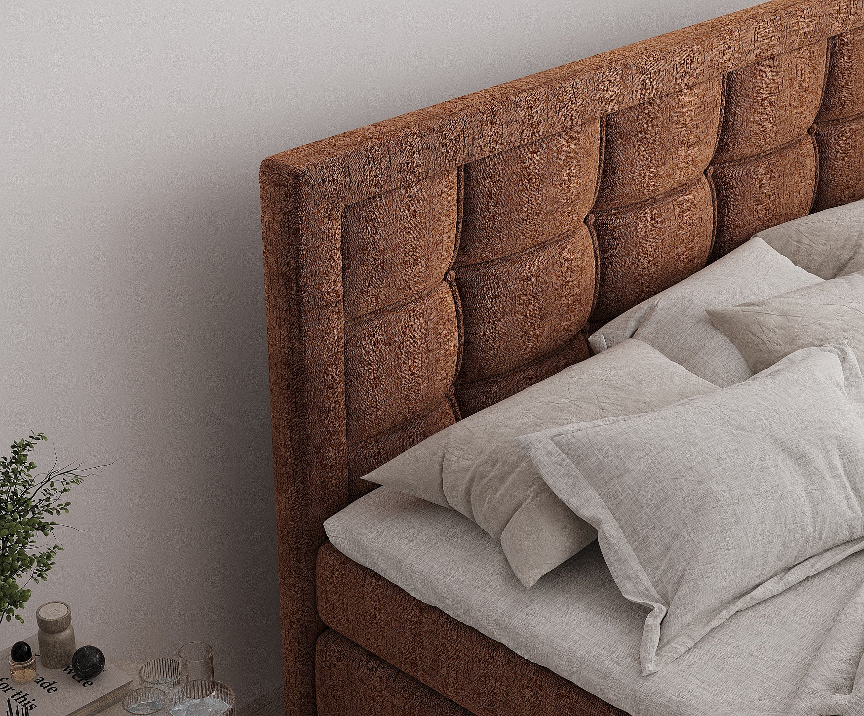 Lit boxspring en tissu chenille Ambrosia - matelas - surmatelas - 180x200 cm - couleur cuivre