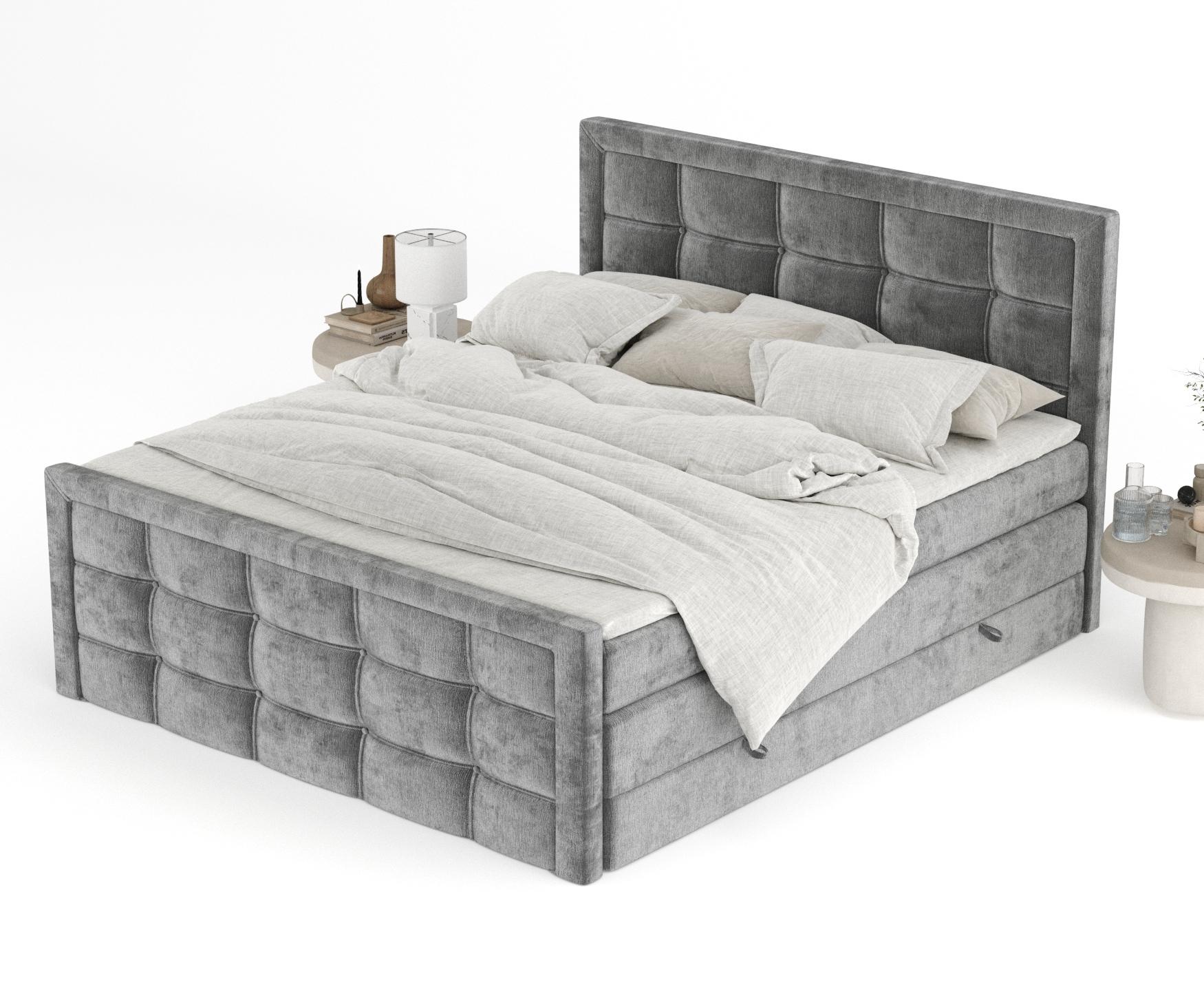 Lit boxspring en tissu chenille Ambrosia - matelas - surmatelas - 180x200 cm - gris