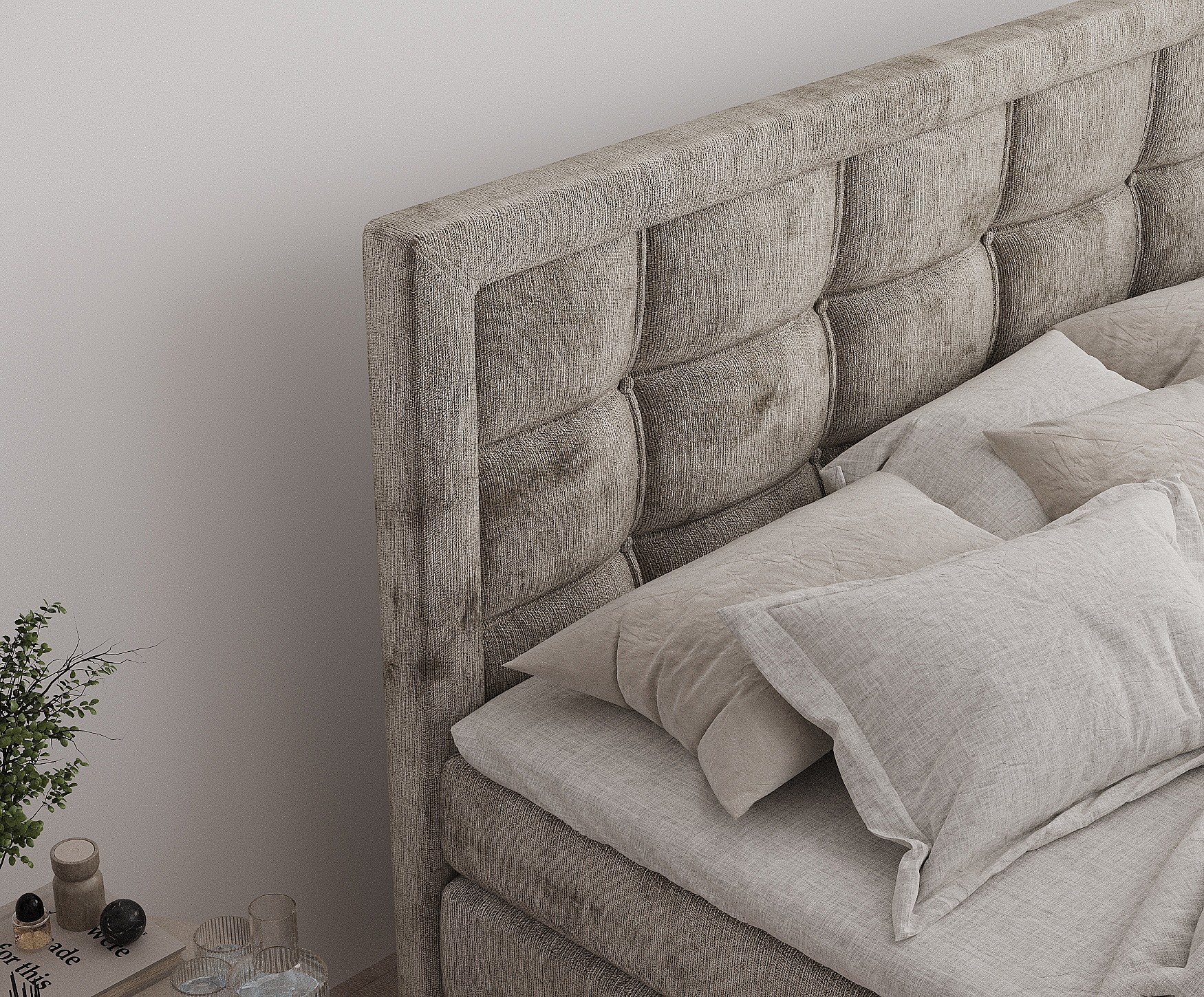 Lit boxspring en tissu chenille Ambrosia - matelas - surmatelas - 200x200 cm - beige