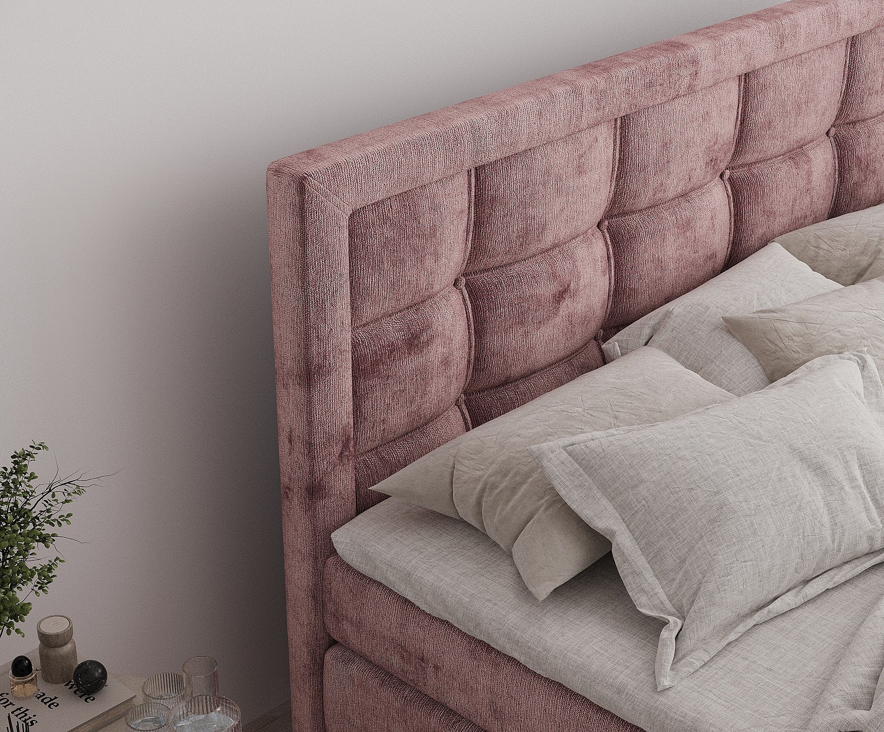 Lit boxspring en tissu chenille Ambrosia - matelas - surmatelas - 200x200 cm - rose