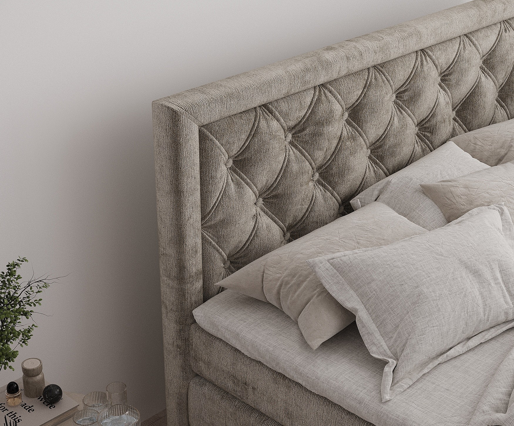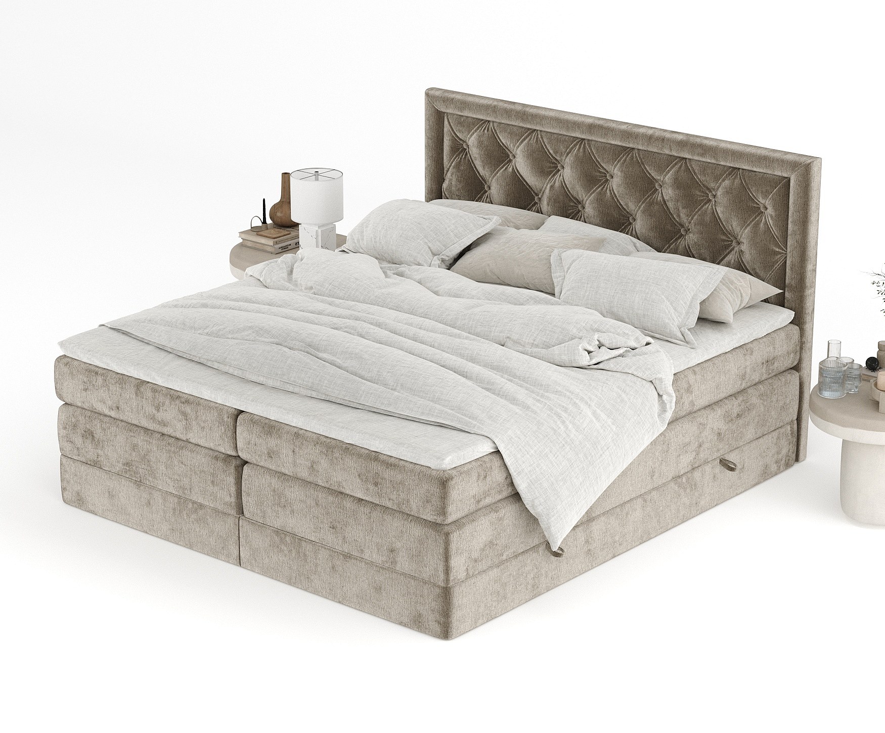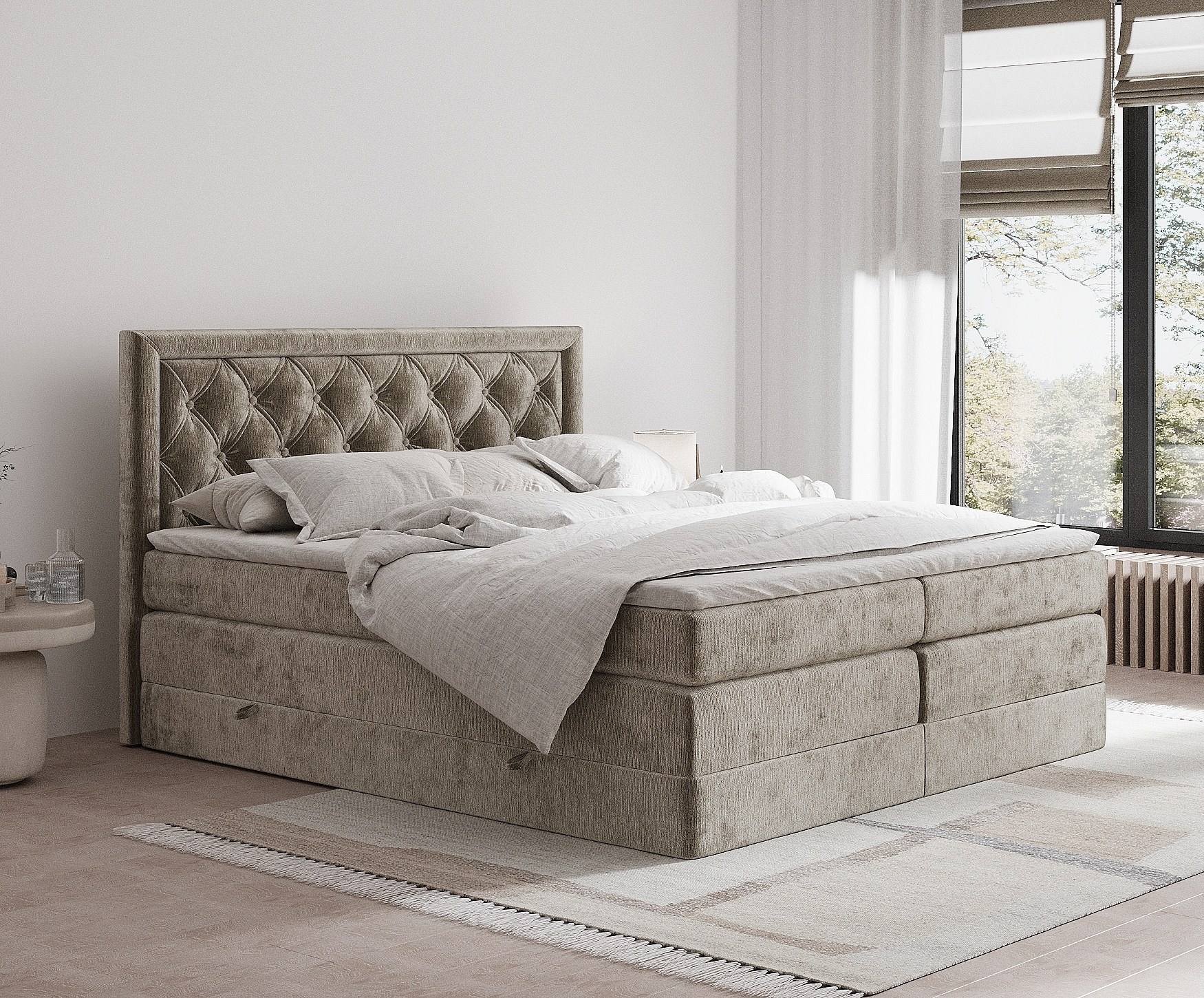 Lit boxspring en tissu chenille Aurelia - matelas - surmatelas - 140x200 cm - beige