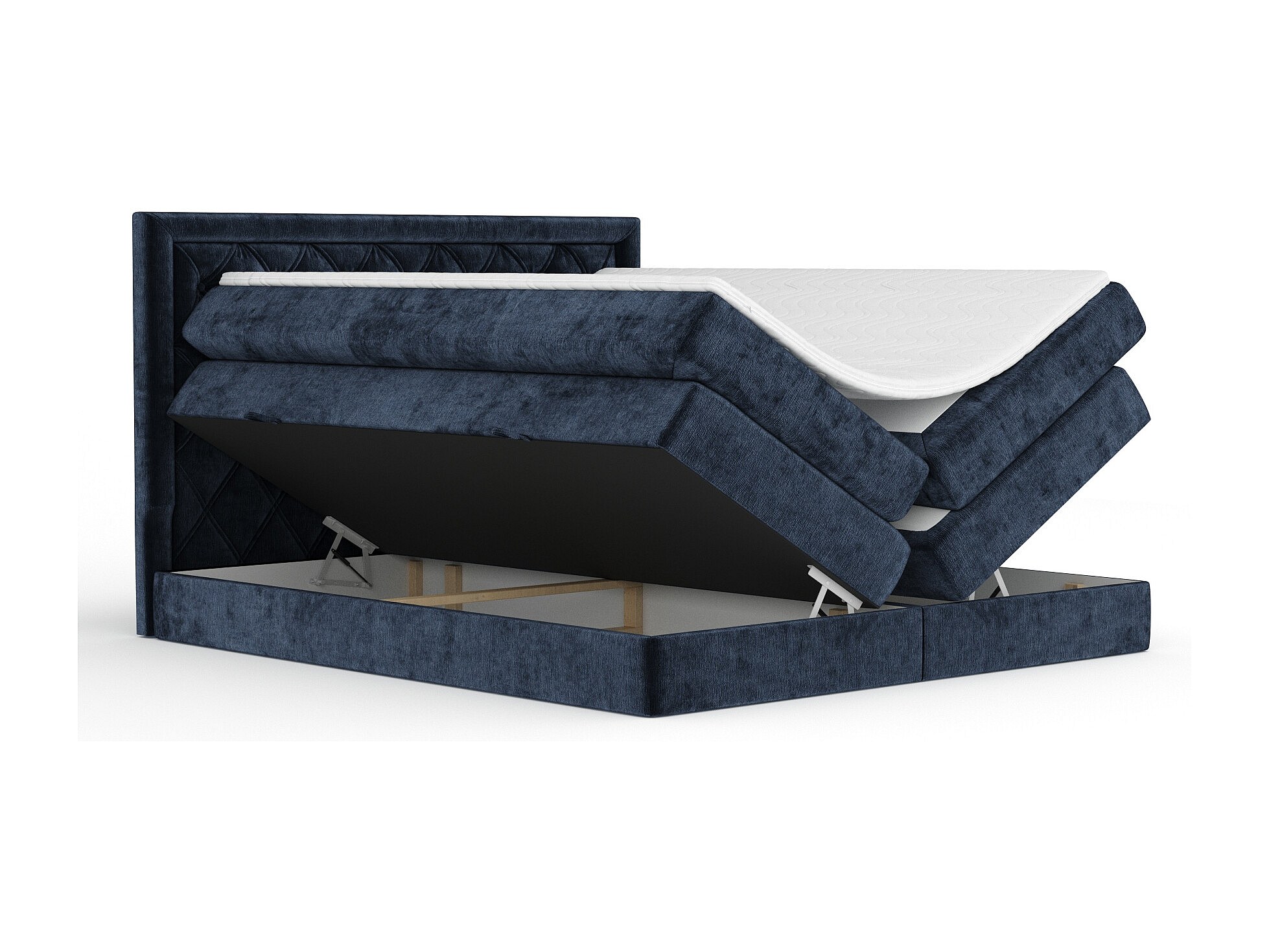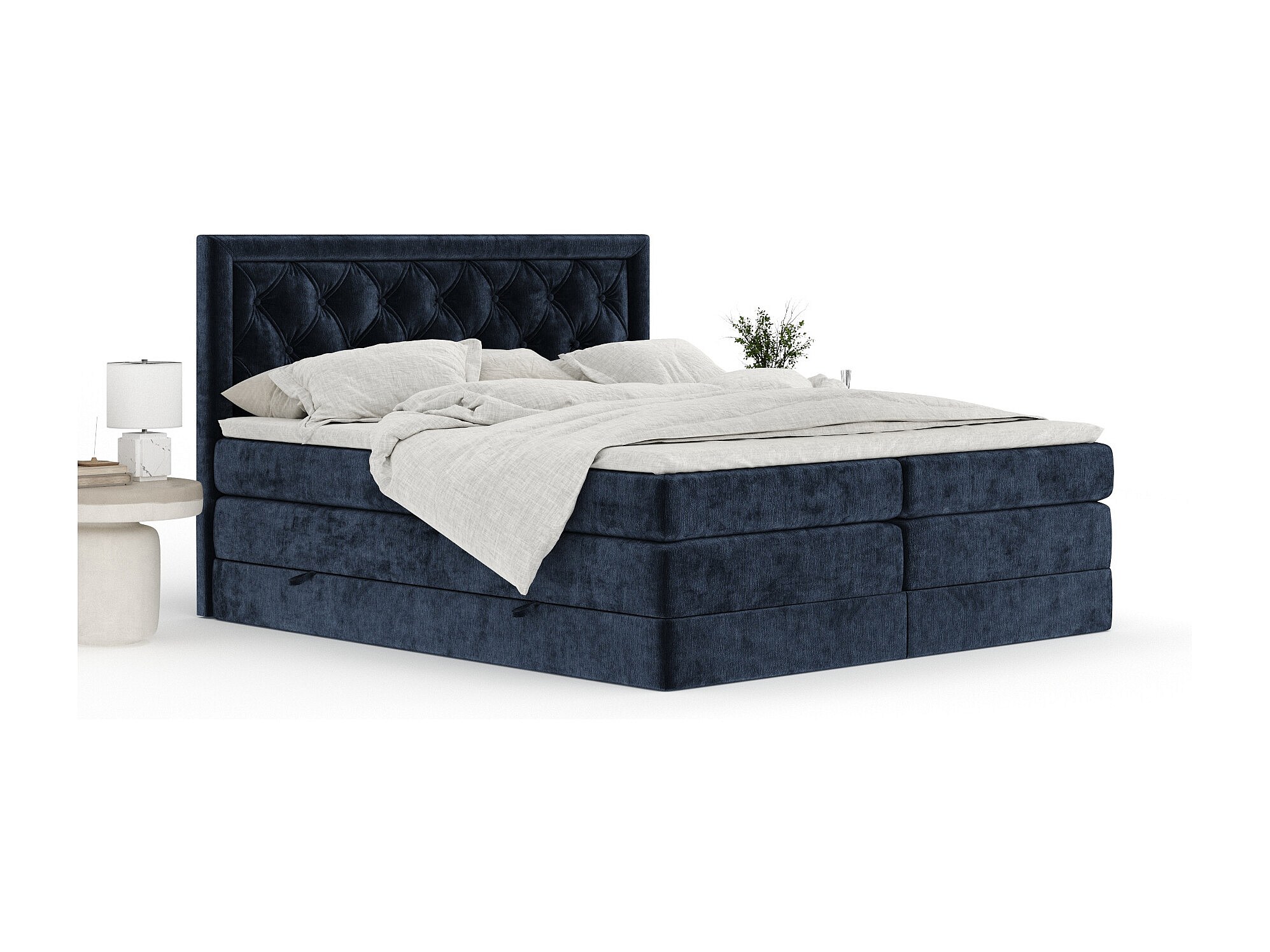 Lit boxspring en tissu chenille Aurelia - matelas - surmatelas - 140x200 cm - bleu marine