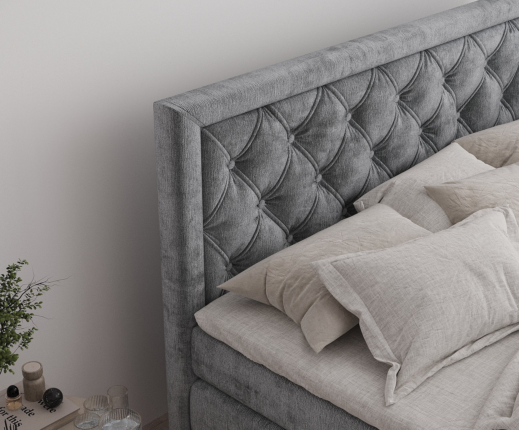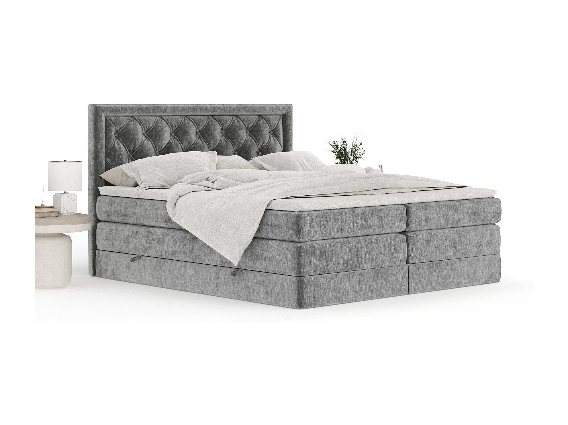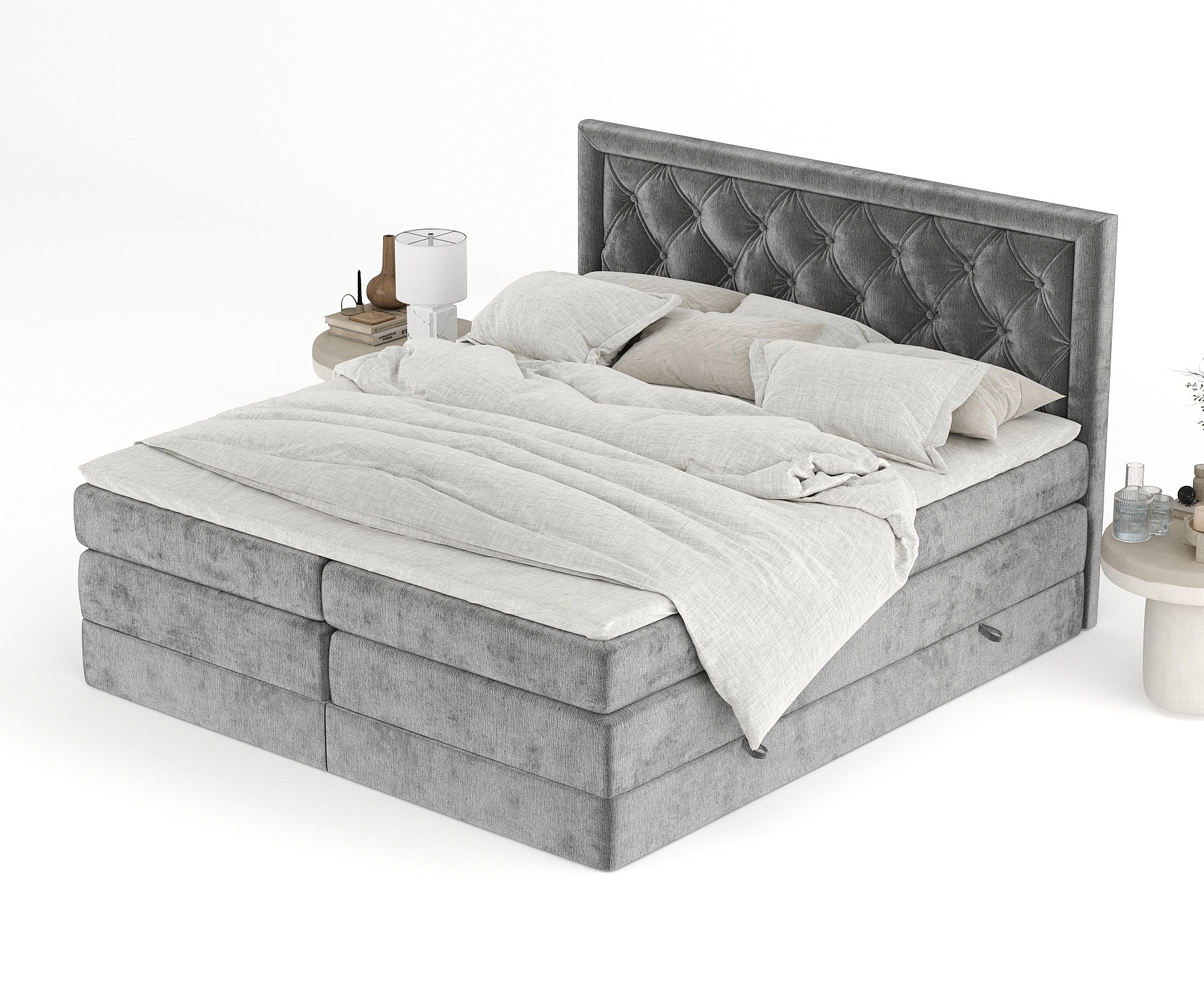 Lit boxspring en tissu chenille Aurelia - matelas - surmatelas - 140x200 cm - gris
