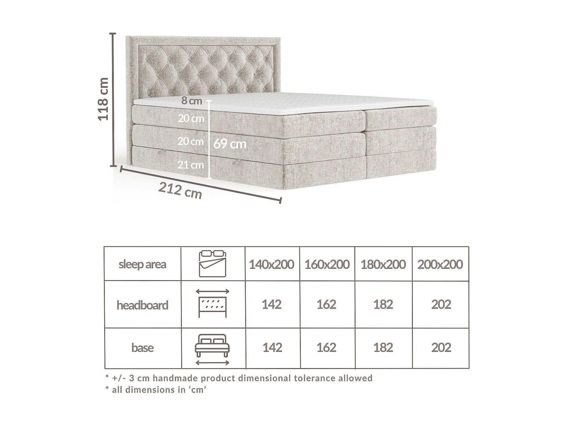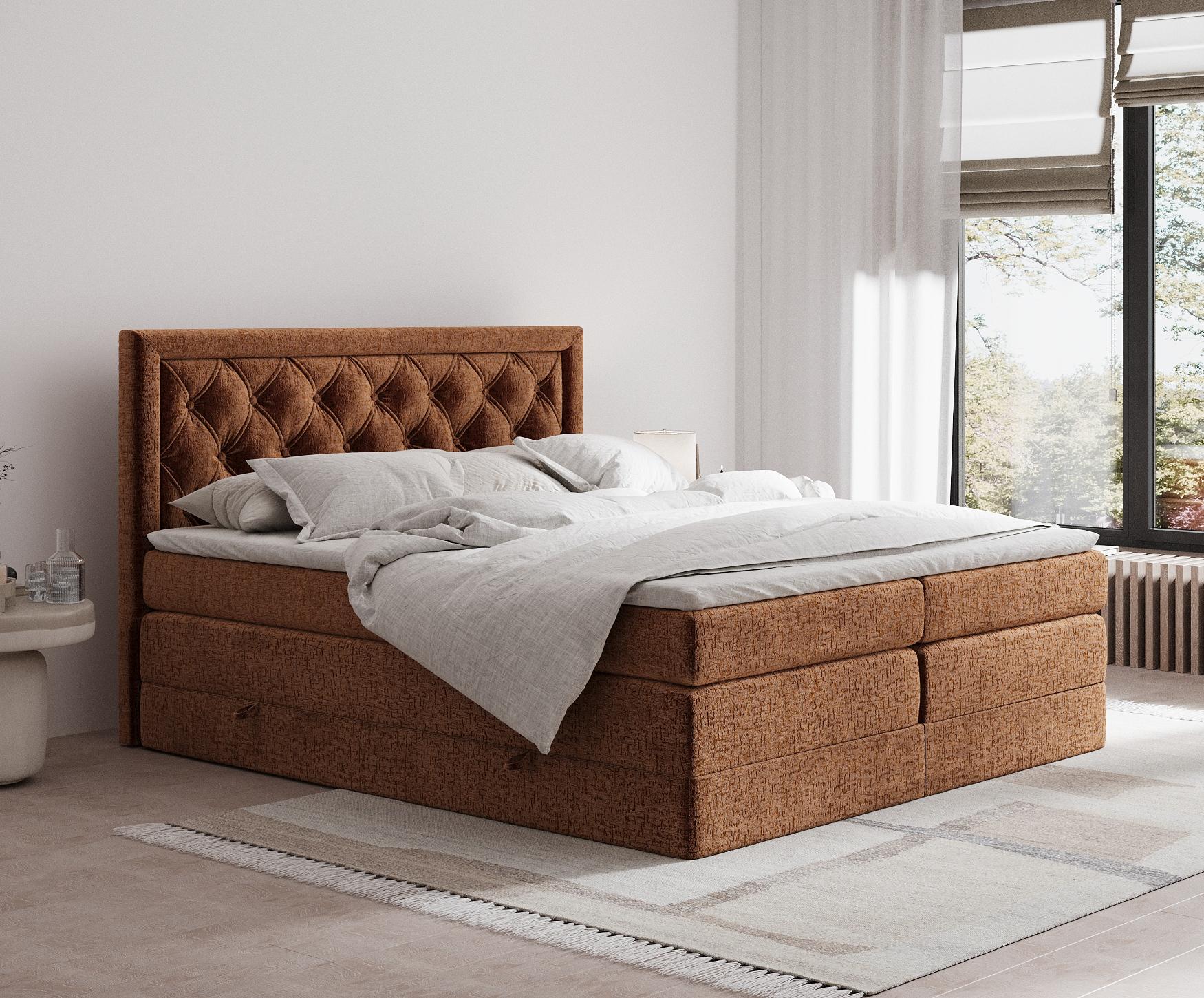 Lit boxspring en tissu chenille Aurelia - matelas - surmatelas - 160x200 cm - couleur cuivre