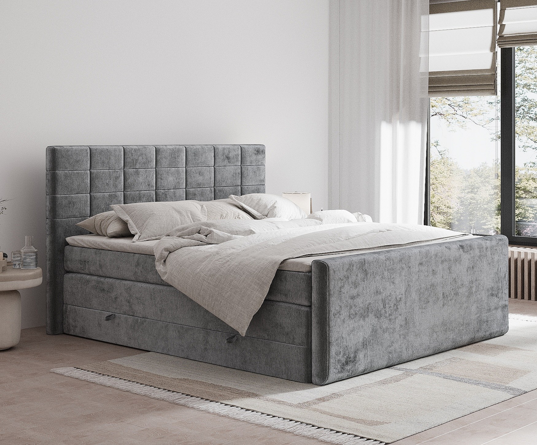 Lit boxspring en tissu chenille Ava - matelas - surmatelas - 140x200 cm - gris