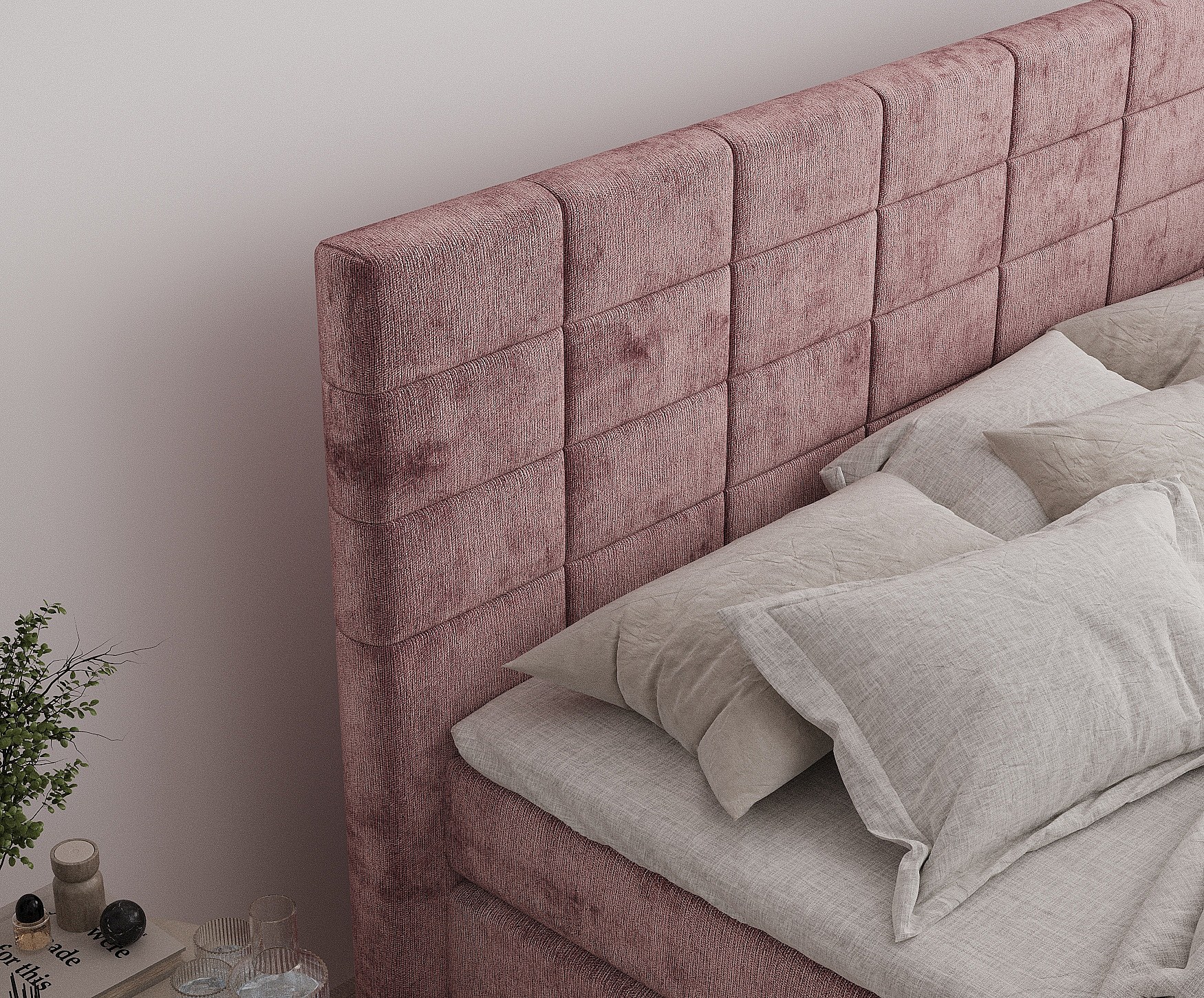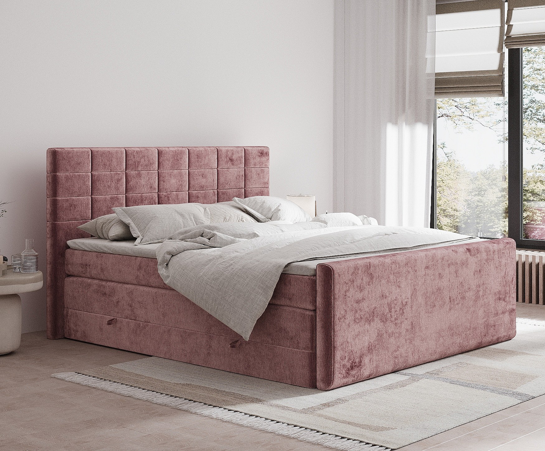 Lit boxspring en tissu chenille Ava - matelas - surmatelas - 140x200 cm - rose