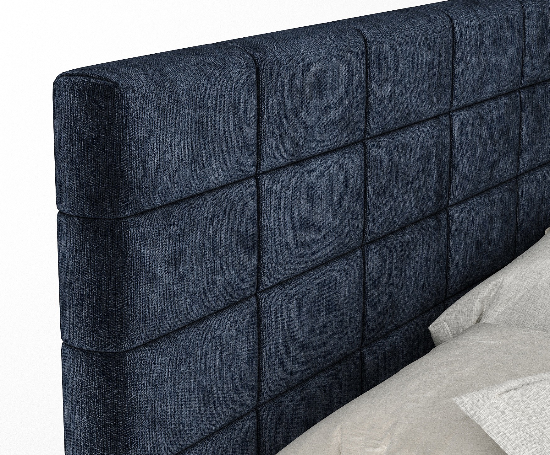 Lit boxspring en tissu chenille Ava - matelas - surmatelas - 180x200 cm - bleu marine