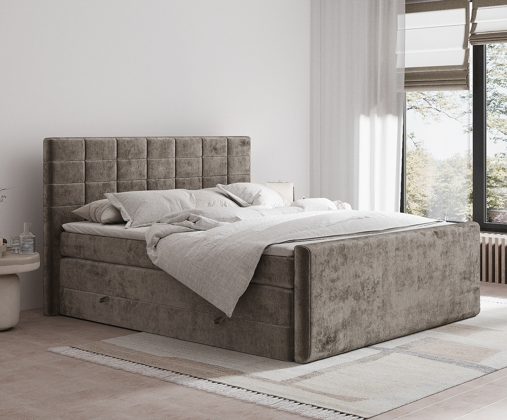 Lit boxspring en tissu chenille Ava - matelas - surmatelas - 180x200 cm - brun