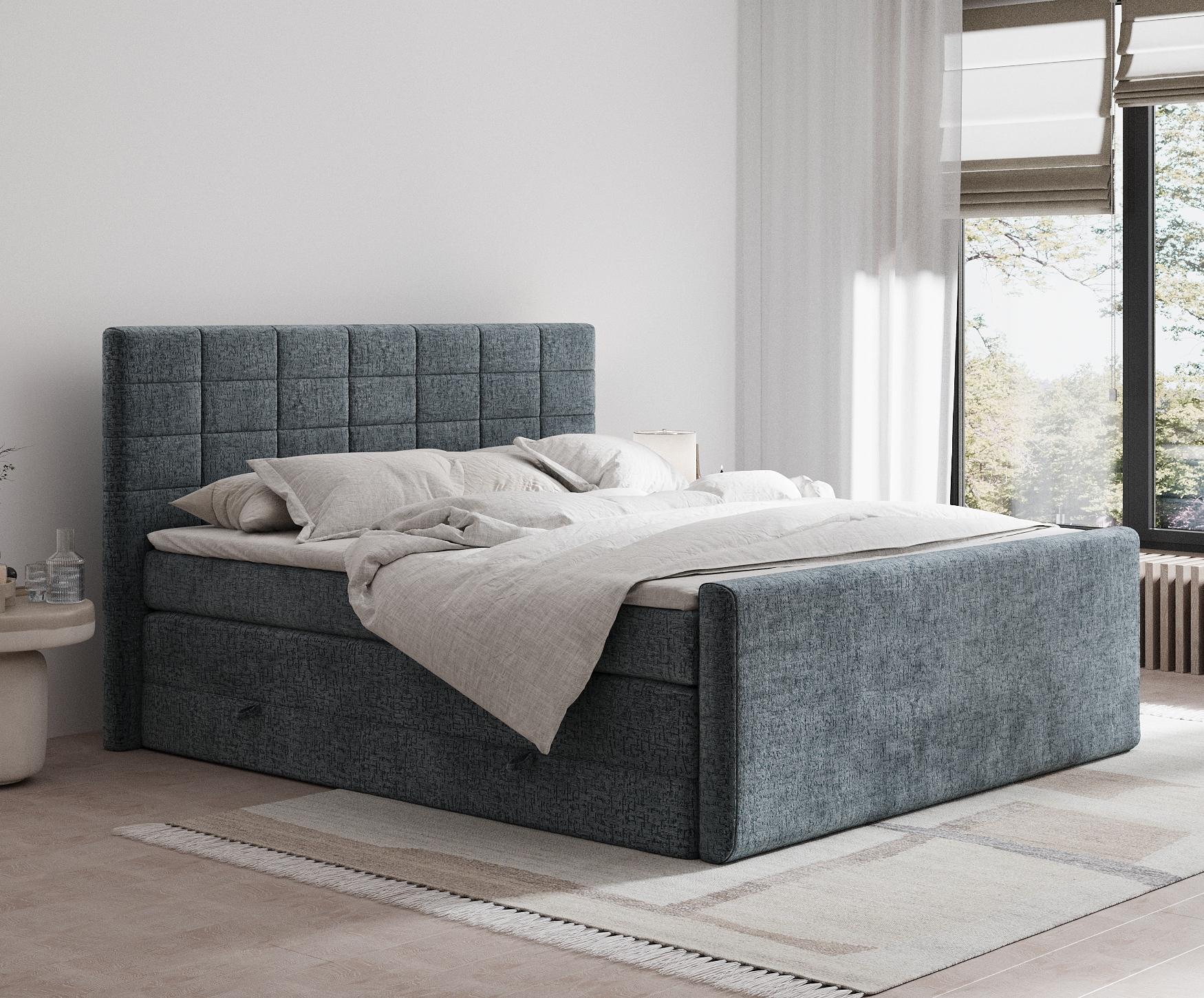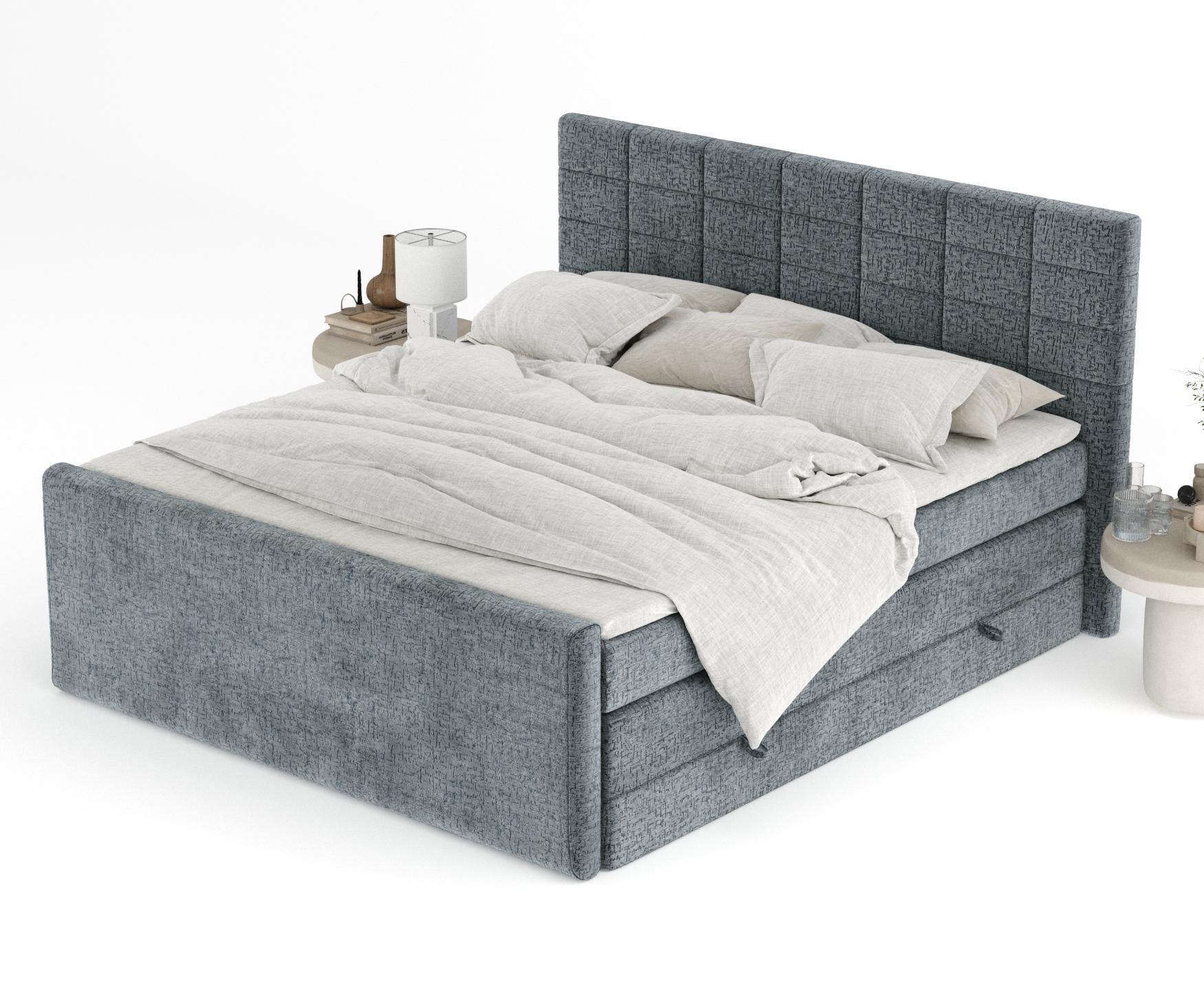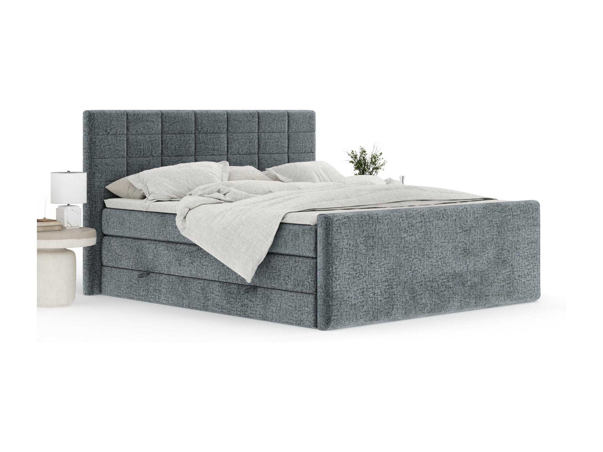 Lit boxspring en tissu chenille Ava - matelas - surmatelas - 180x200 cm - gris