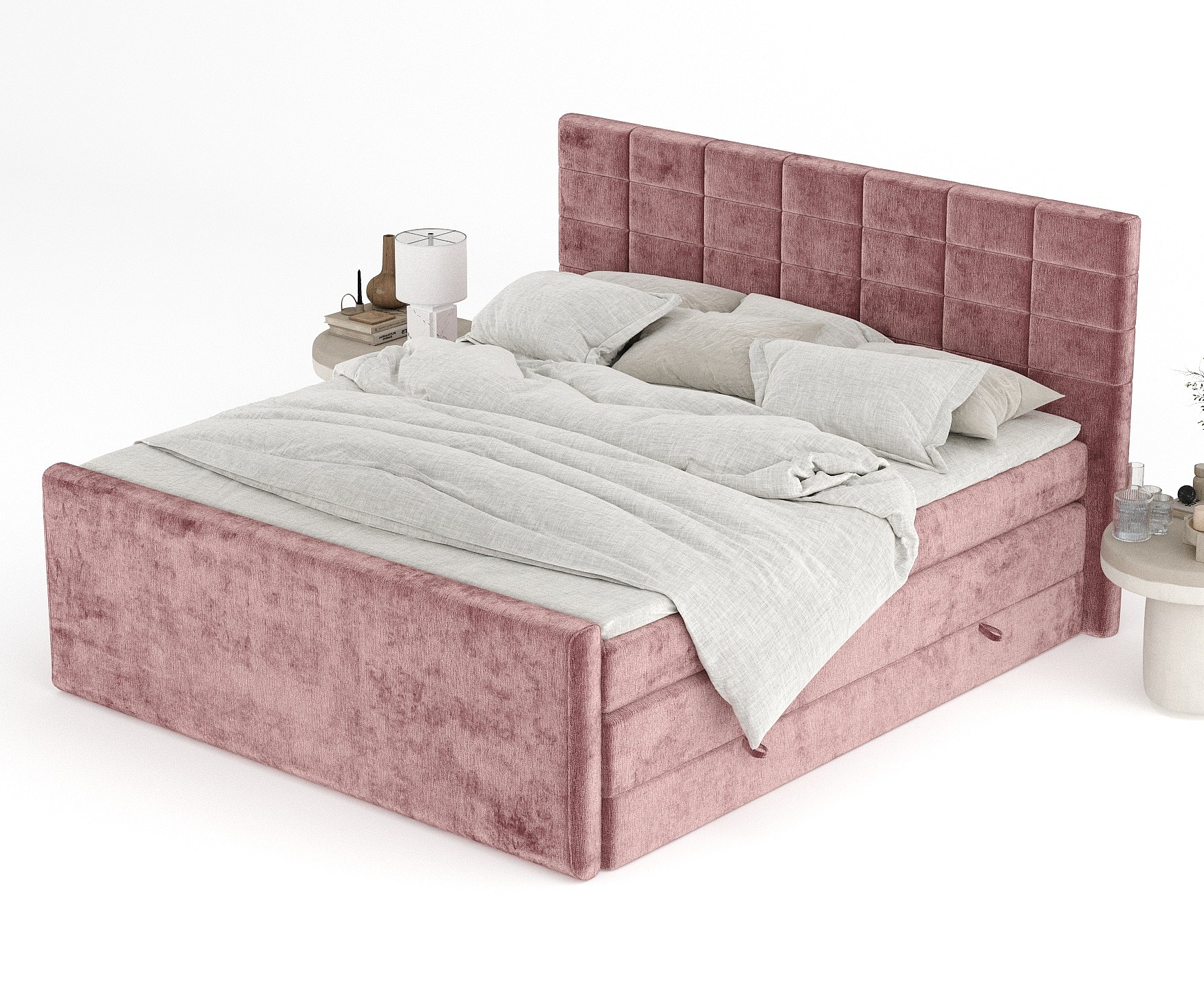 Lit boxspring en tissu chenille Ava - matelas - surmatelas - 180x200 cm - rose