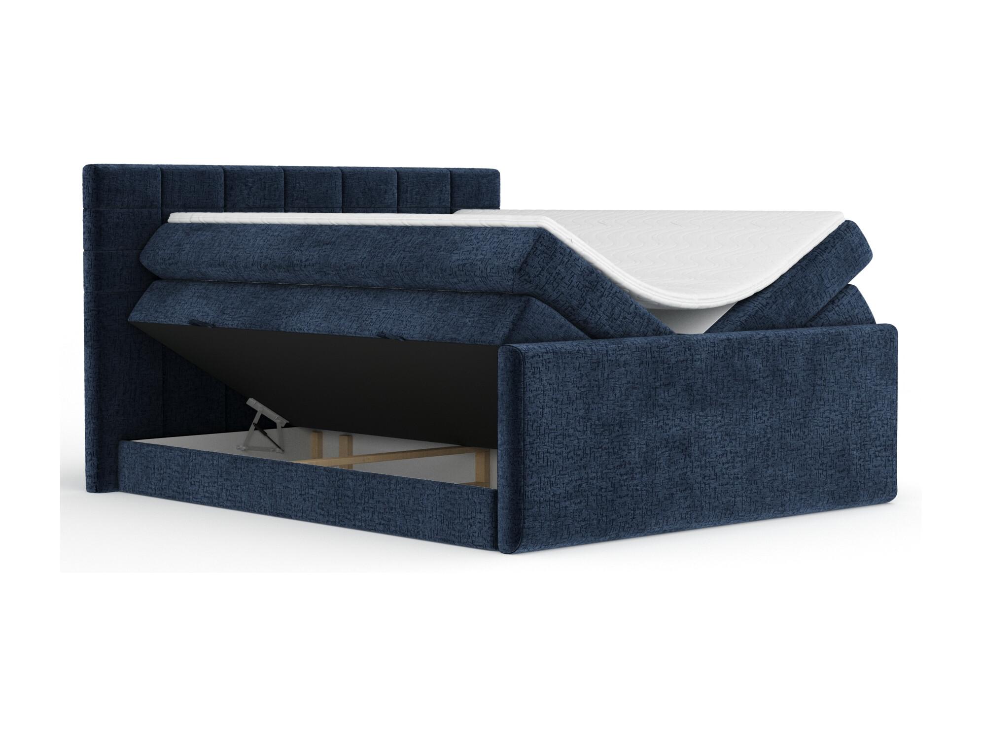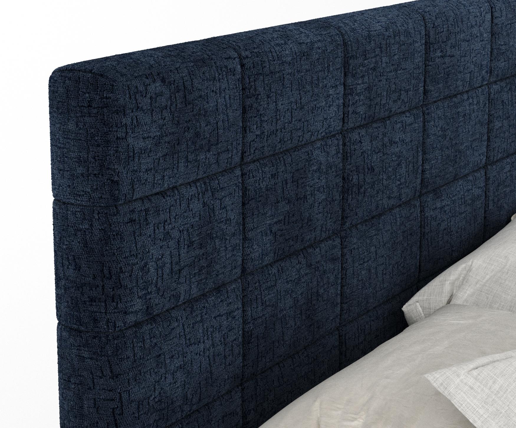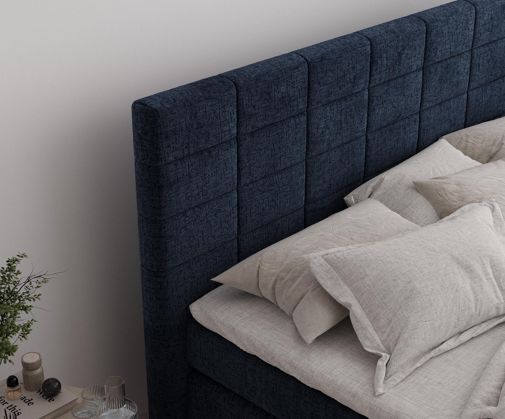Lit boxspring en tissu chenille Ava - matelas - surmatelas - 200x200 cm - bleu marine