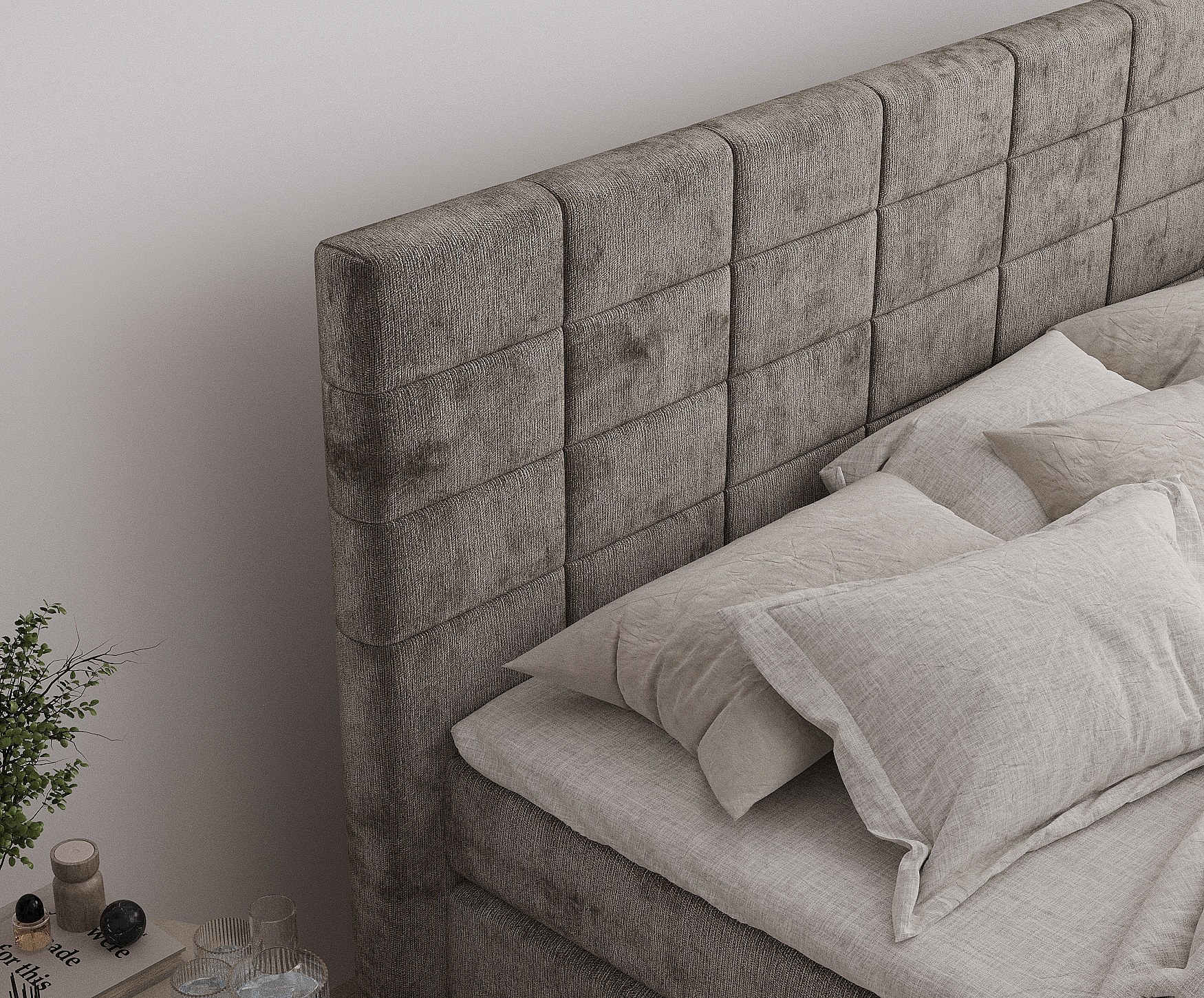 Lit boxspring en tissu chenille Ava - matelas - surmatelas - 200x200 cm - brun