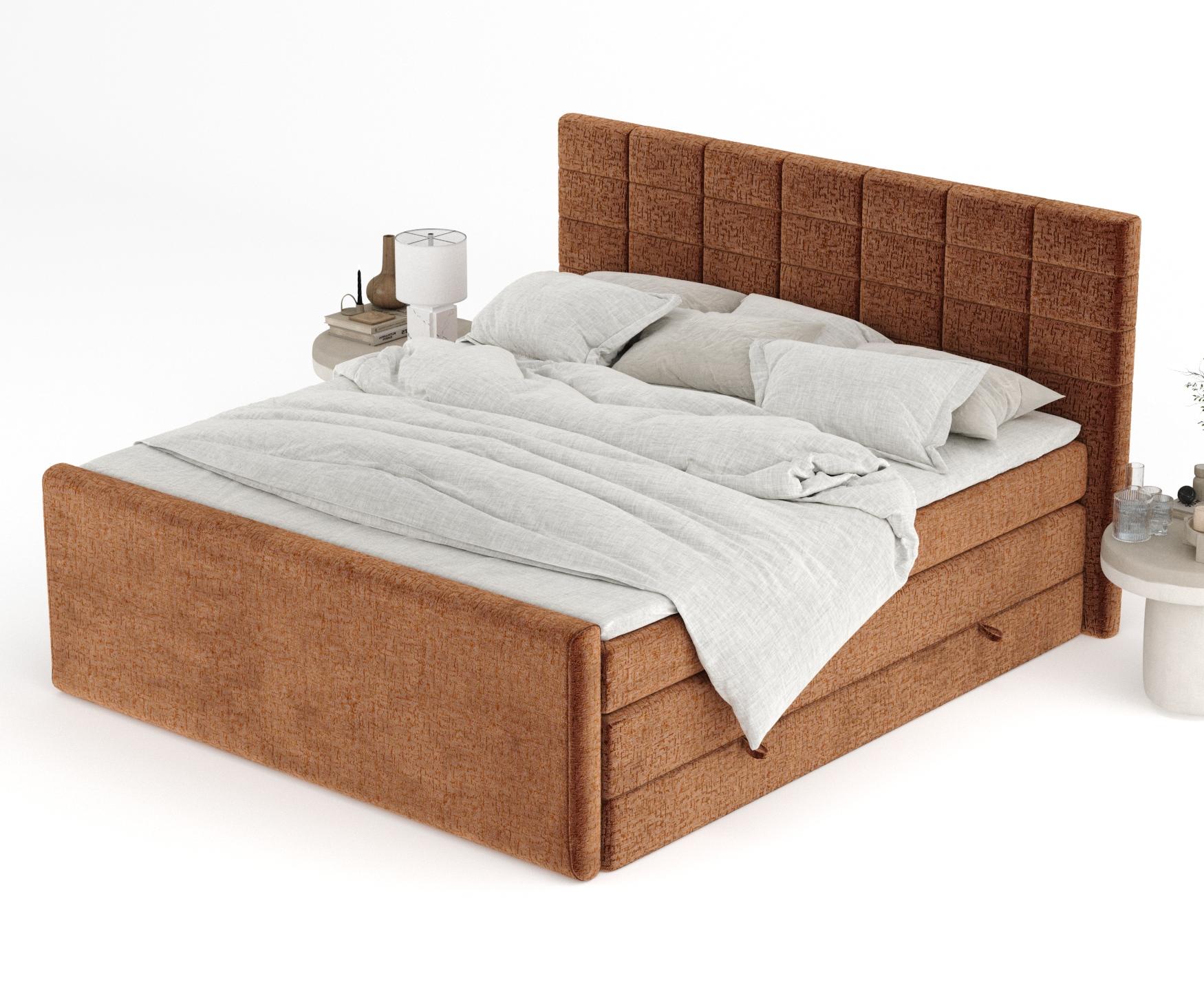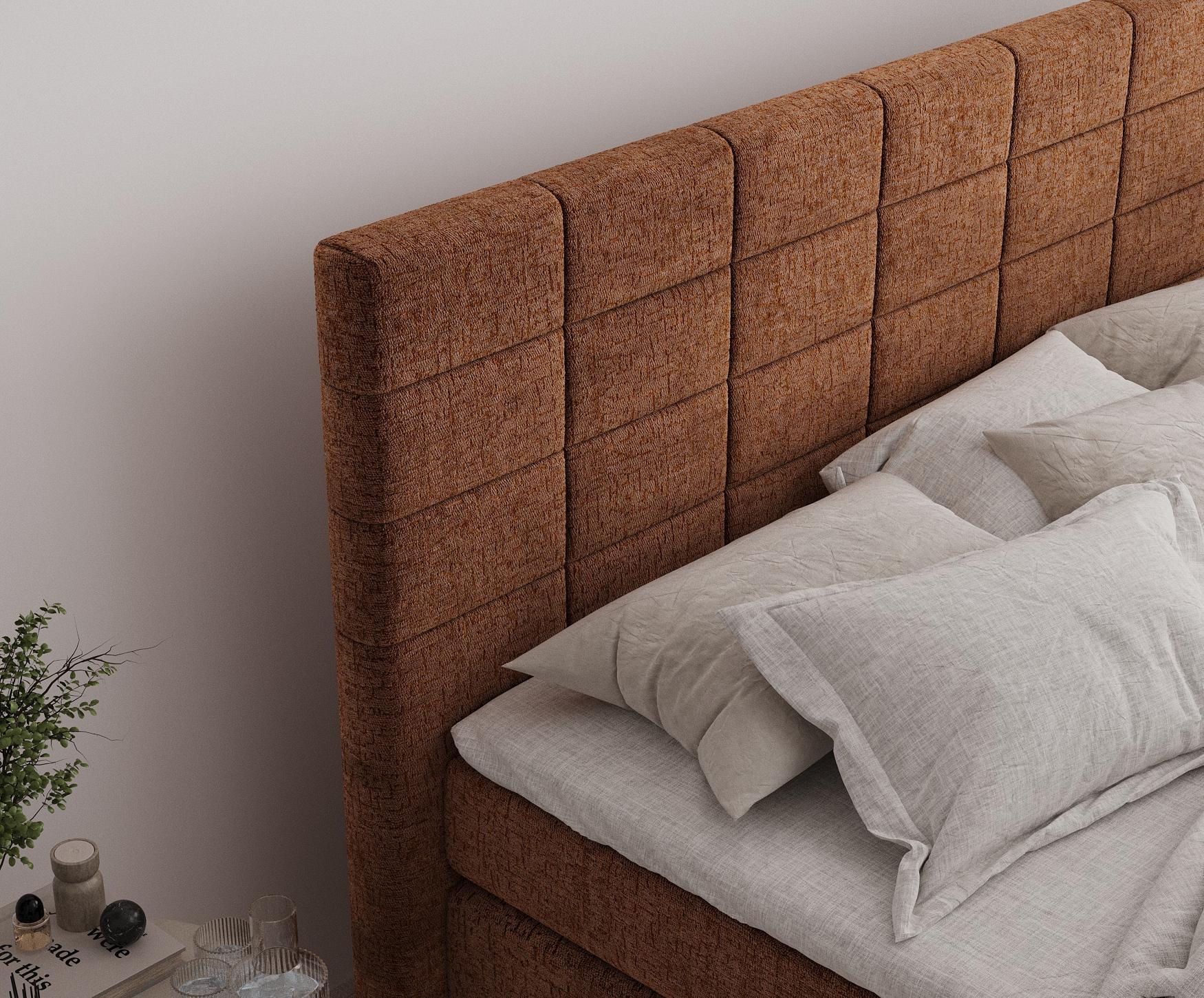 Lit boxspring en tissu chenille Ava - matelas - surmatelas - 200x200 cm - couleur cuivre