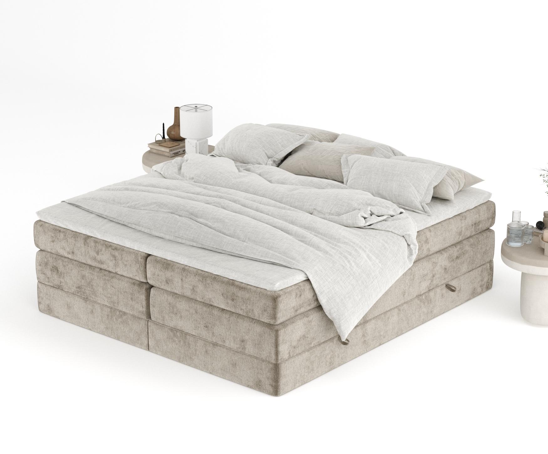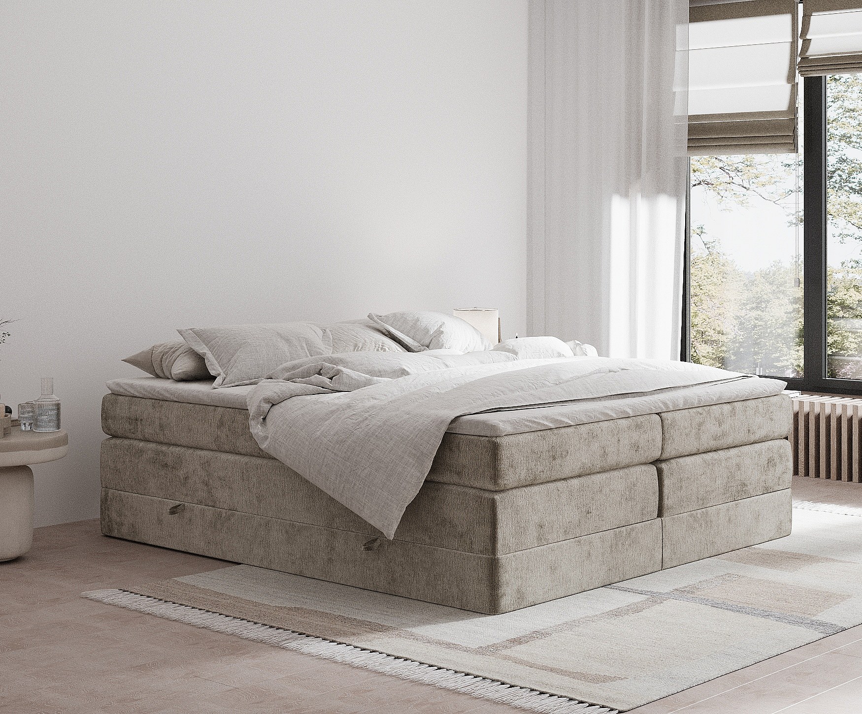 Lit boxspring en tissu chenille Juniper - matelas - surmatelas - 140x200 cm - beige
