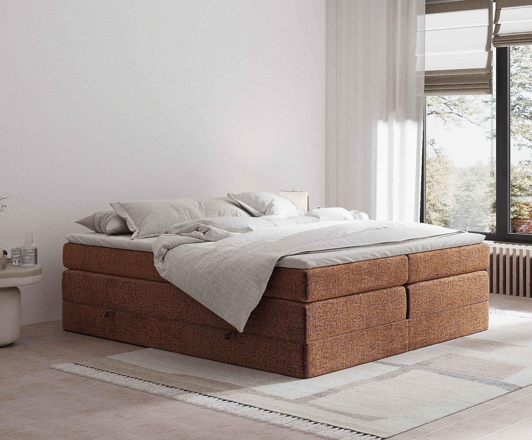 Lit boxspring en tissu chenille Juniper - matelas - surmatelas - 140x200 cm - couleur cuivre