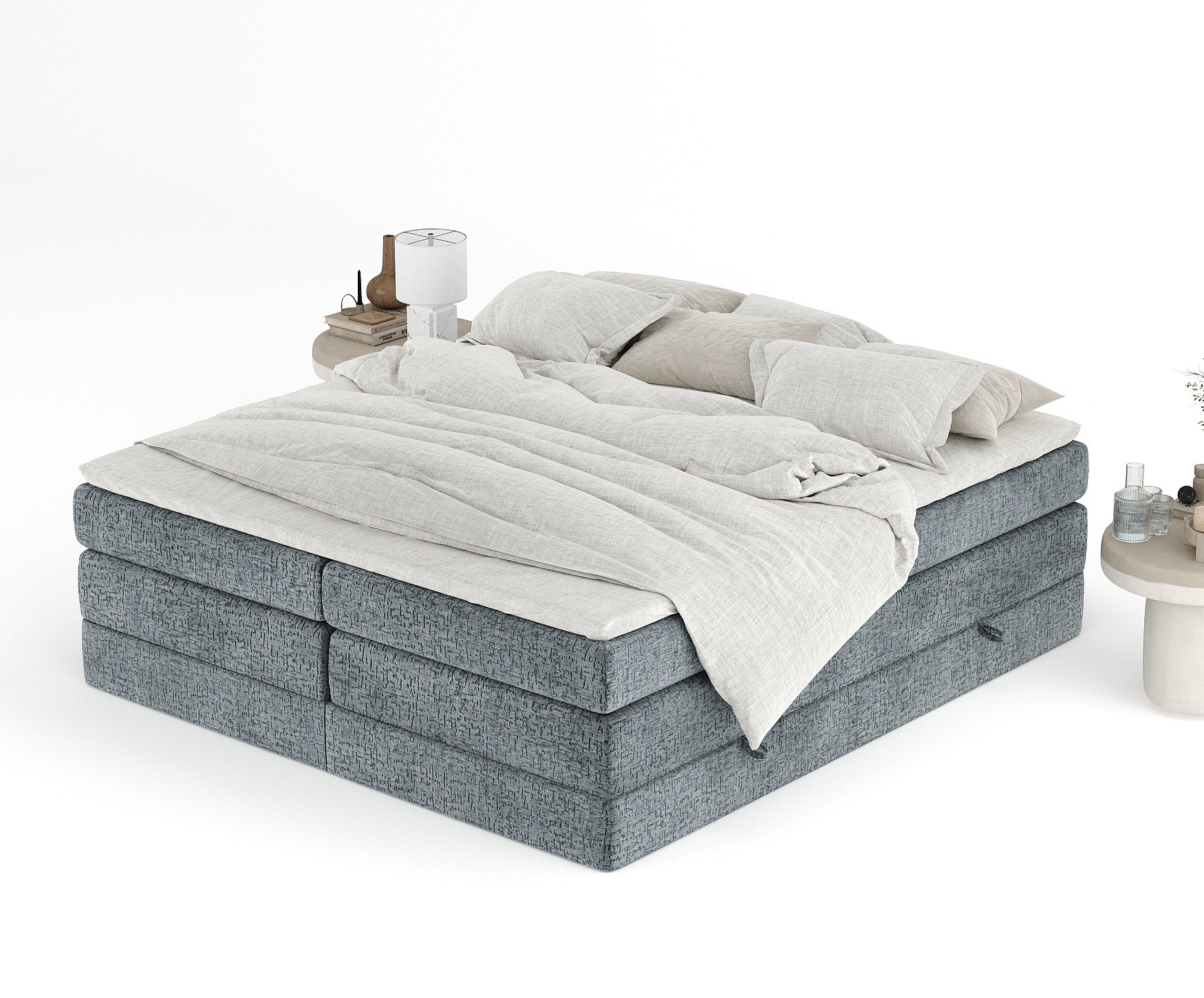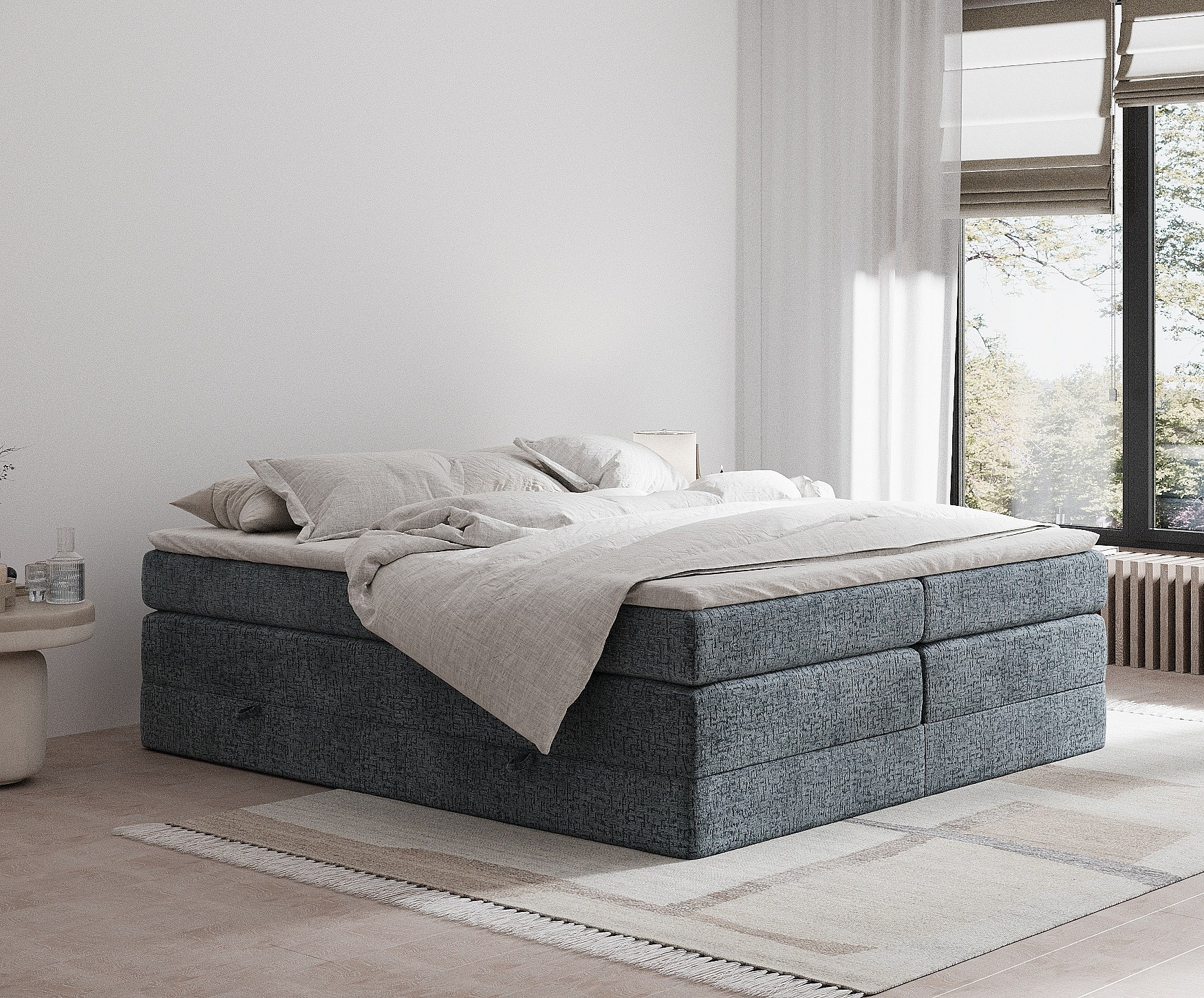Lit boxspring en tissu chenille Juniper - matelas - surmatelas - 140x200 cm - gris
