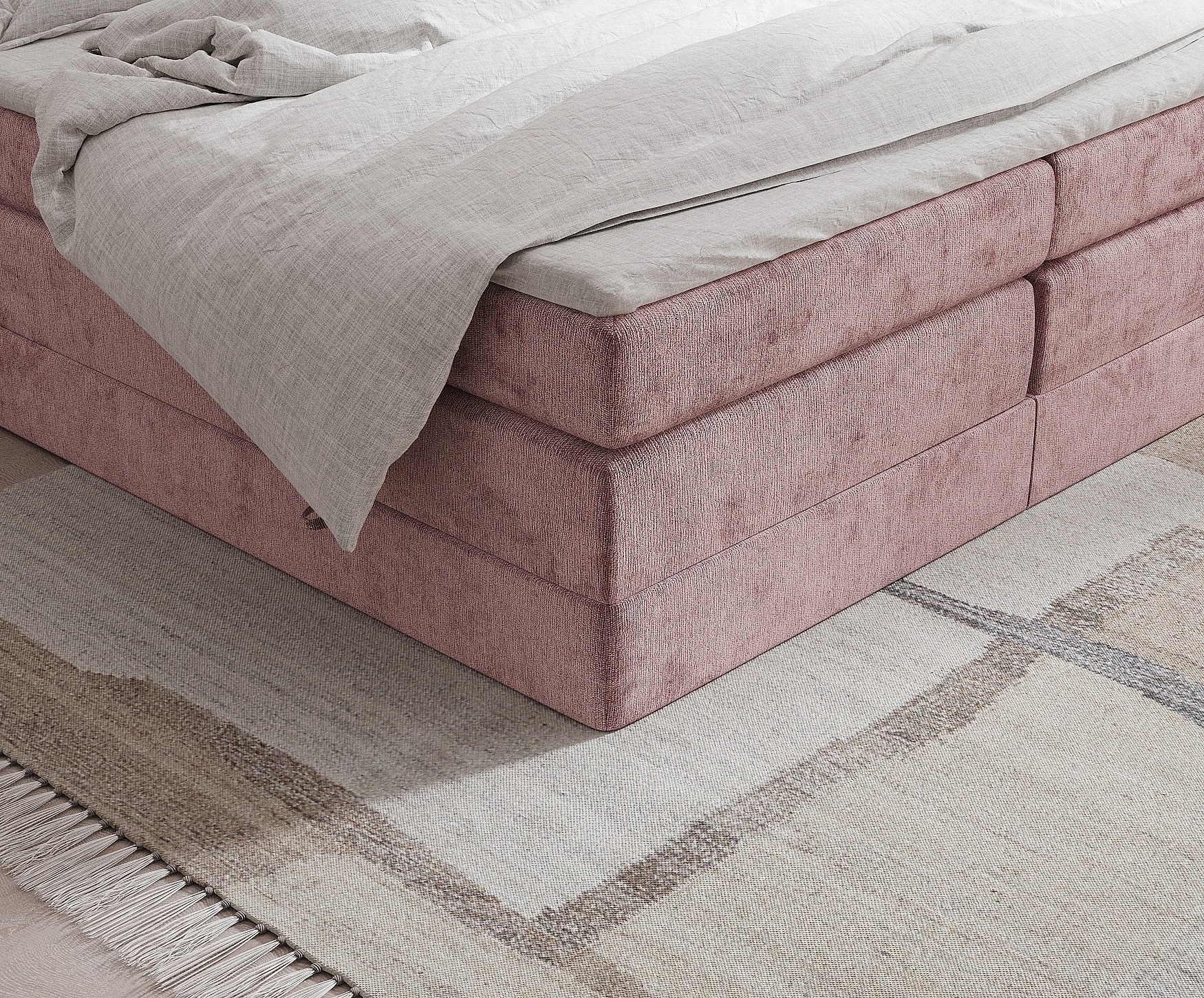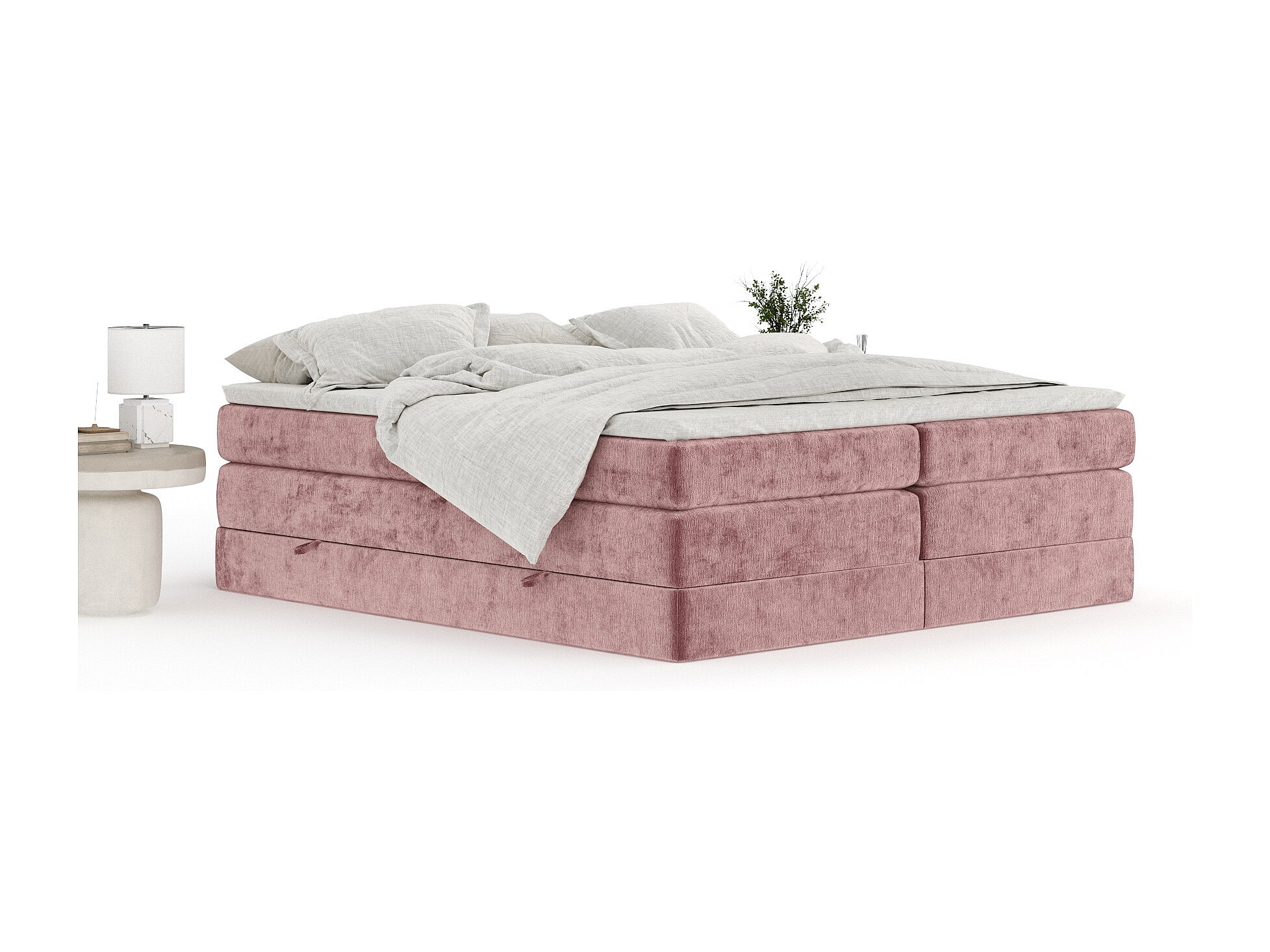 Lit boxspring en tissu chenille Juniper - matelas - surmatelas - 140x200 cm - rose