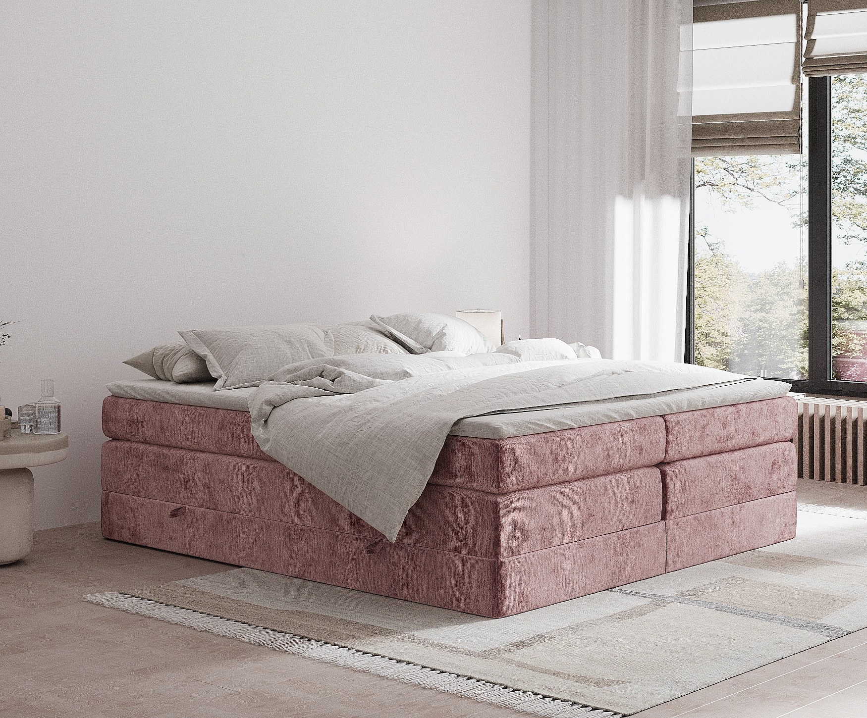 Lit boxspring en tissu chenille Juniper - matelas - surmatelas - 160x200 cm - rose