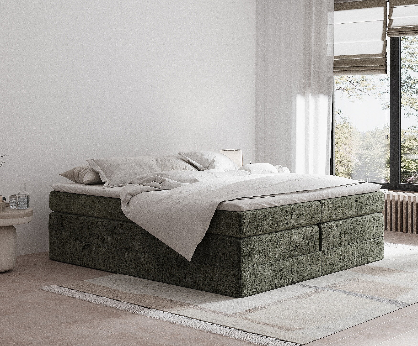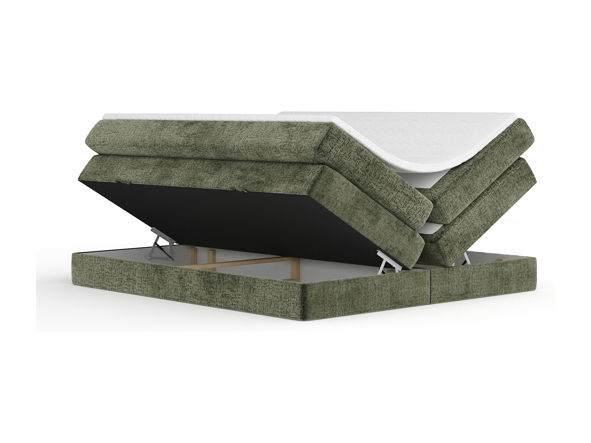 Lit boxspring en tissu chenille Juniper - matelas - surmatelas - 180x200 cm - vert olive