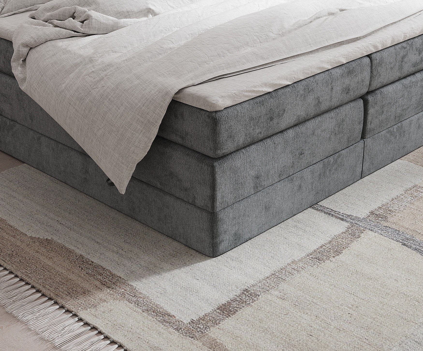 Lit boxspring en tissu chenille Juniper - matelas - surmatelas - 200x200 cm - gris foncé